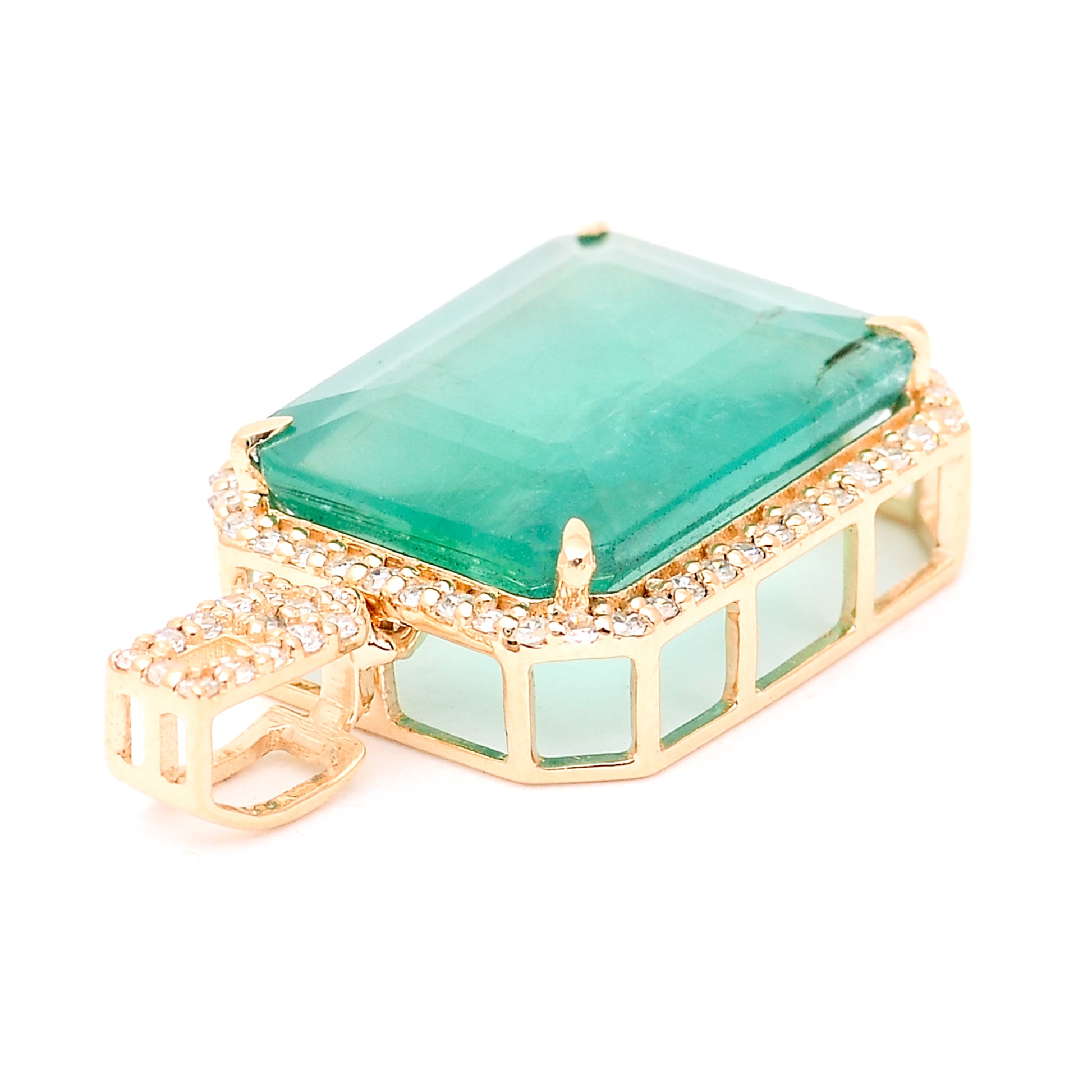 5.79 Ct Octagon Natural Emerald 14K Gold Pendant