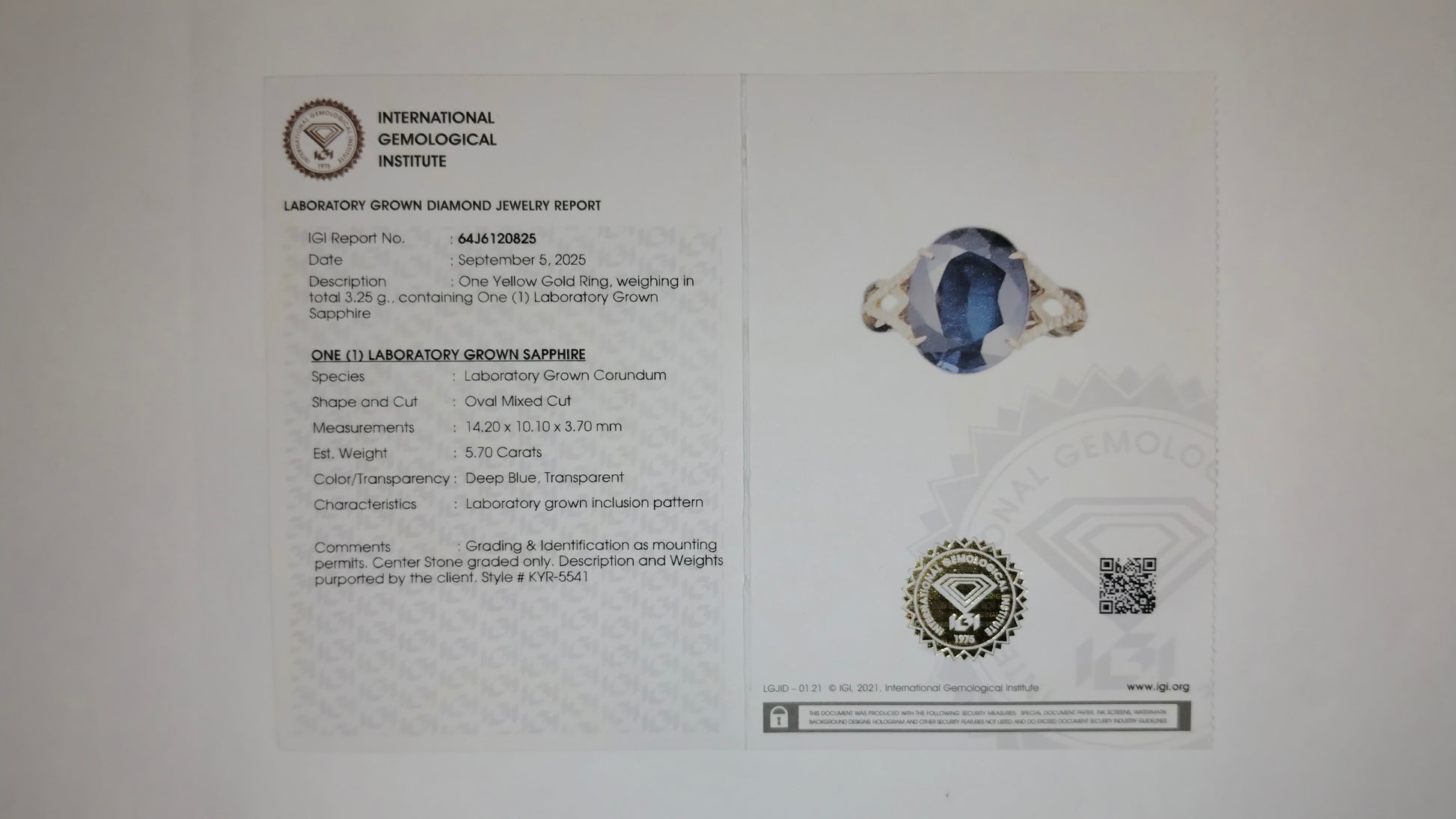 5.84 Total Carat Lab Grown Sapphire 14K Gold Ring