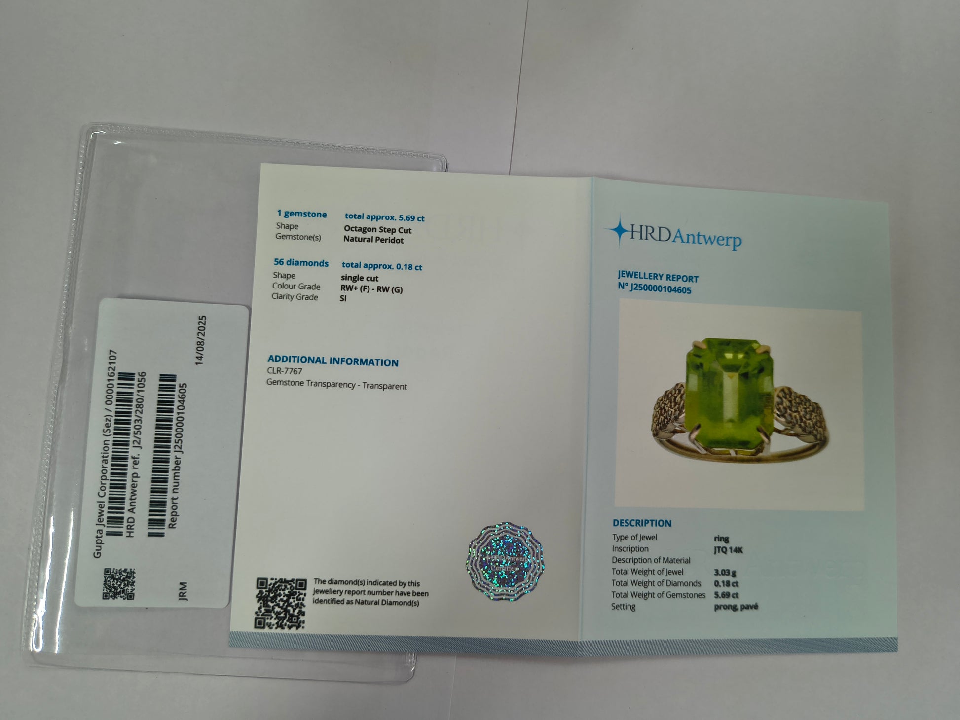 5.87 Ct Octagon Step Cut Natural Peridot 14K Gold Ring