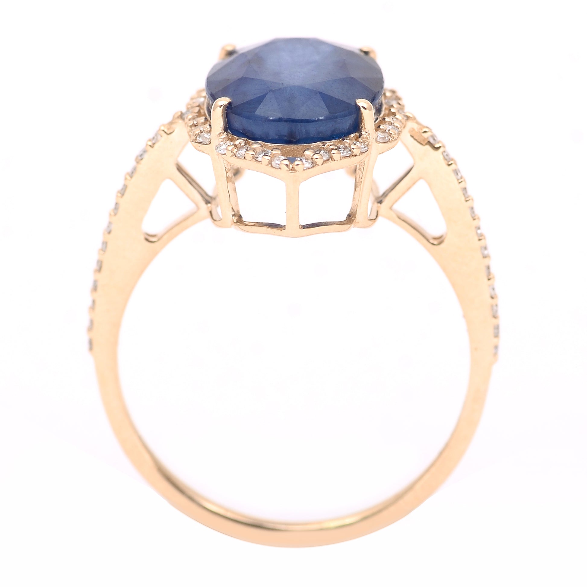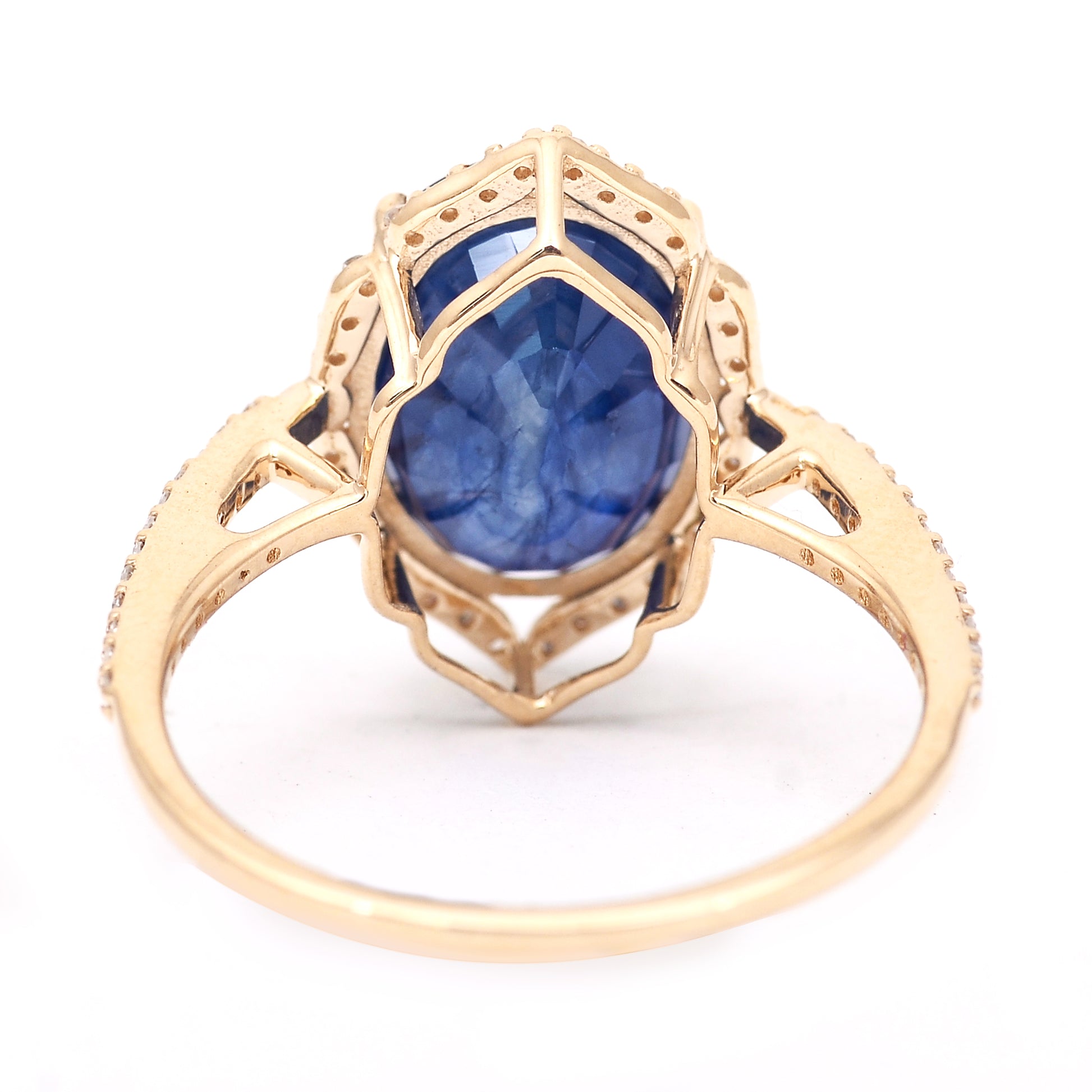 5.90 Ct Oval Mixed Cut Natural Sapphire 14K Gold Ring