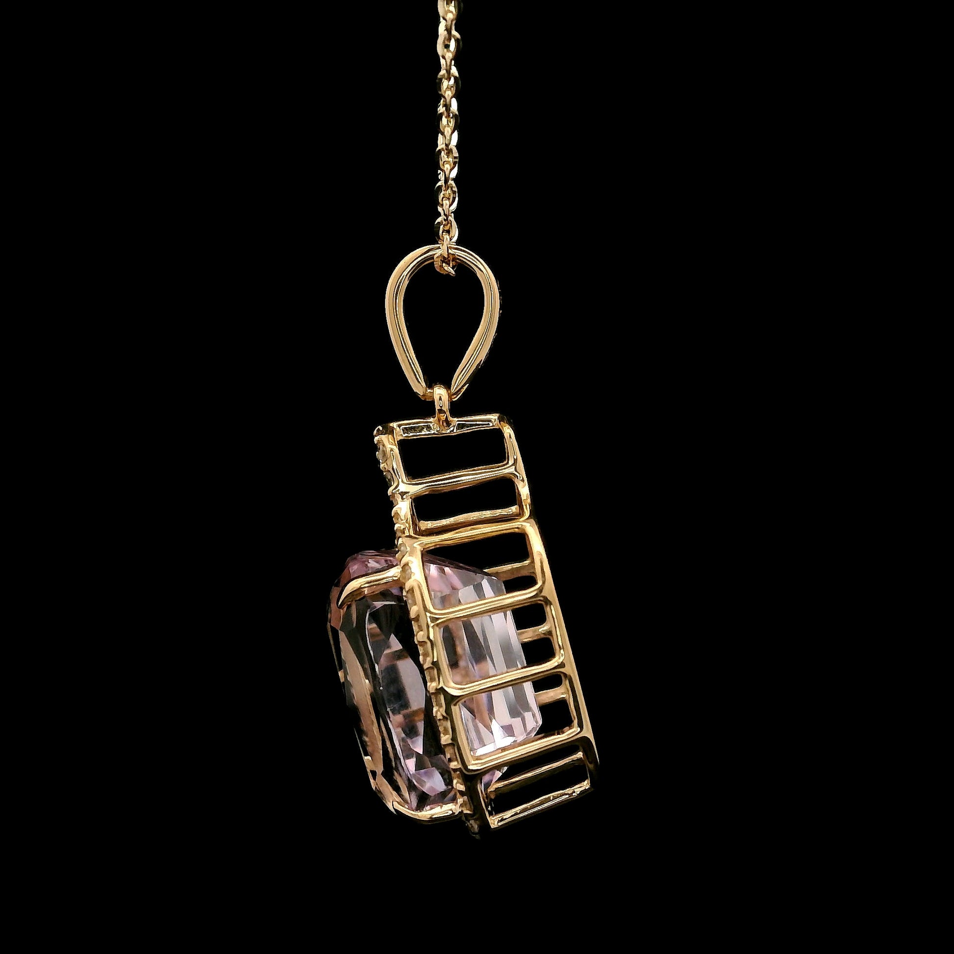 5.91 Ct Cushion Kunzite 14K Gold Pendant