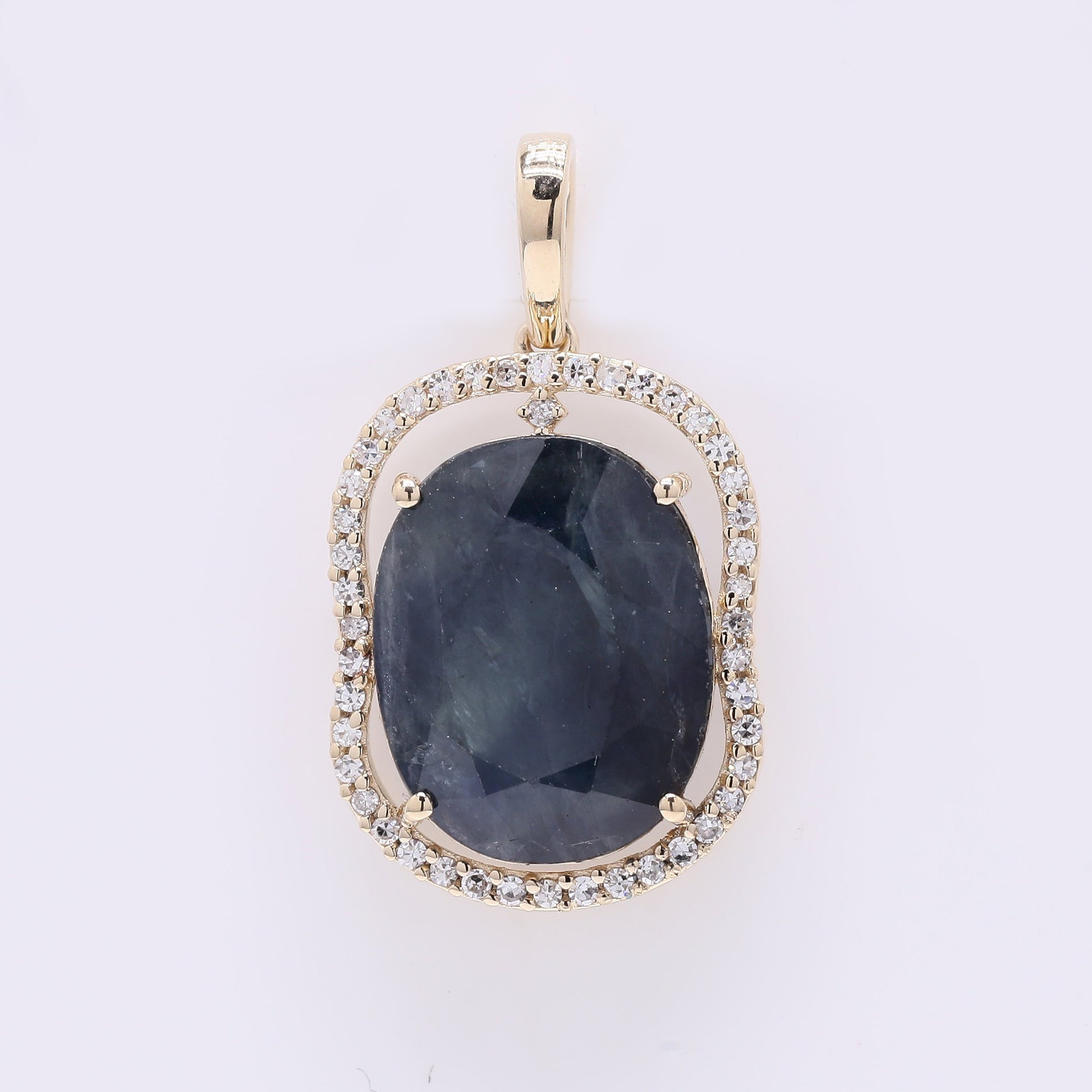 5.92 Total Carat Natural Sapphire 14K Gold Pendant