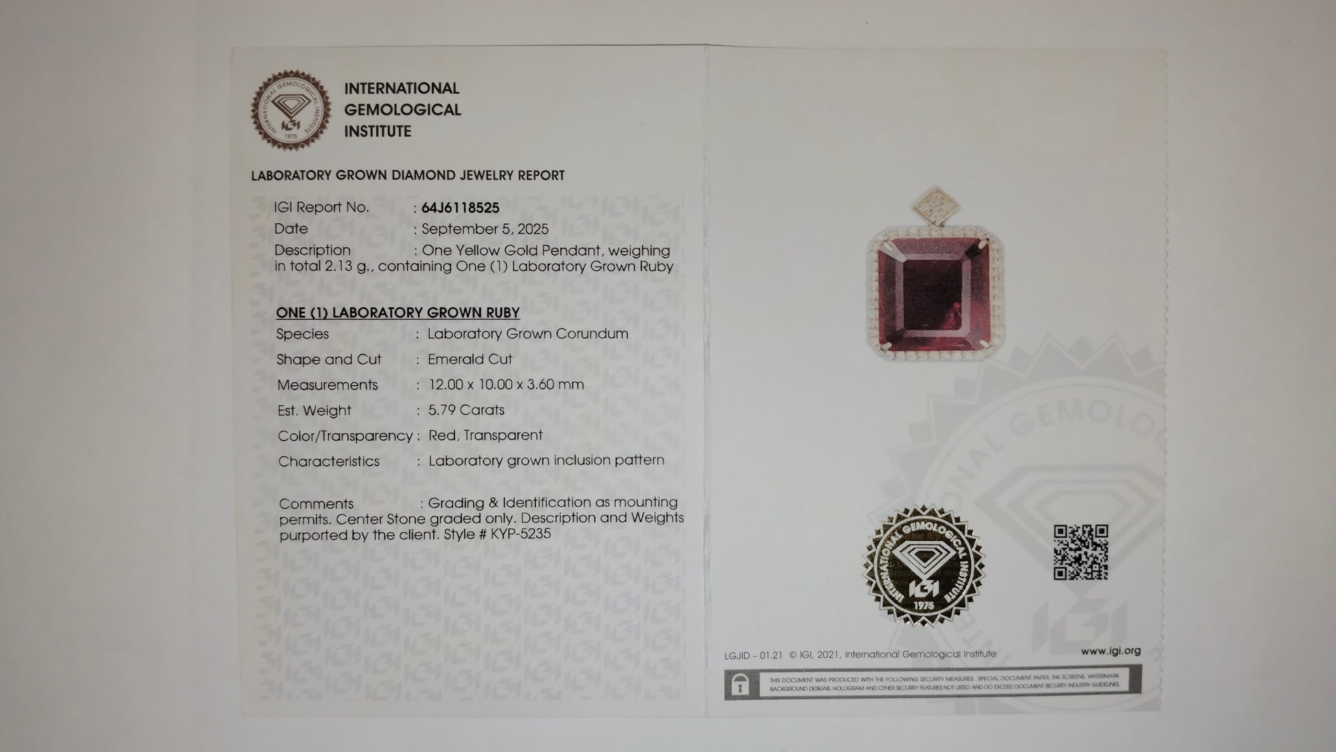 - Lab Name: International Gemological Institute (IGI)