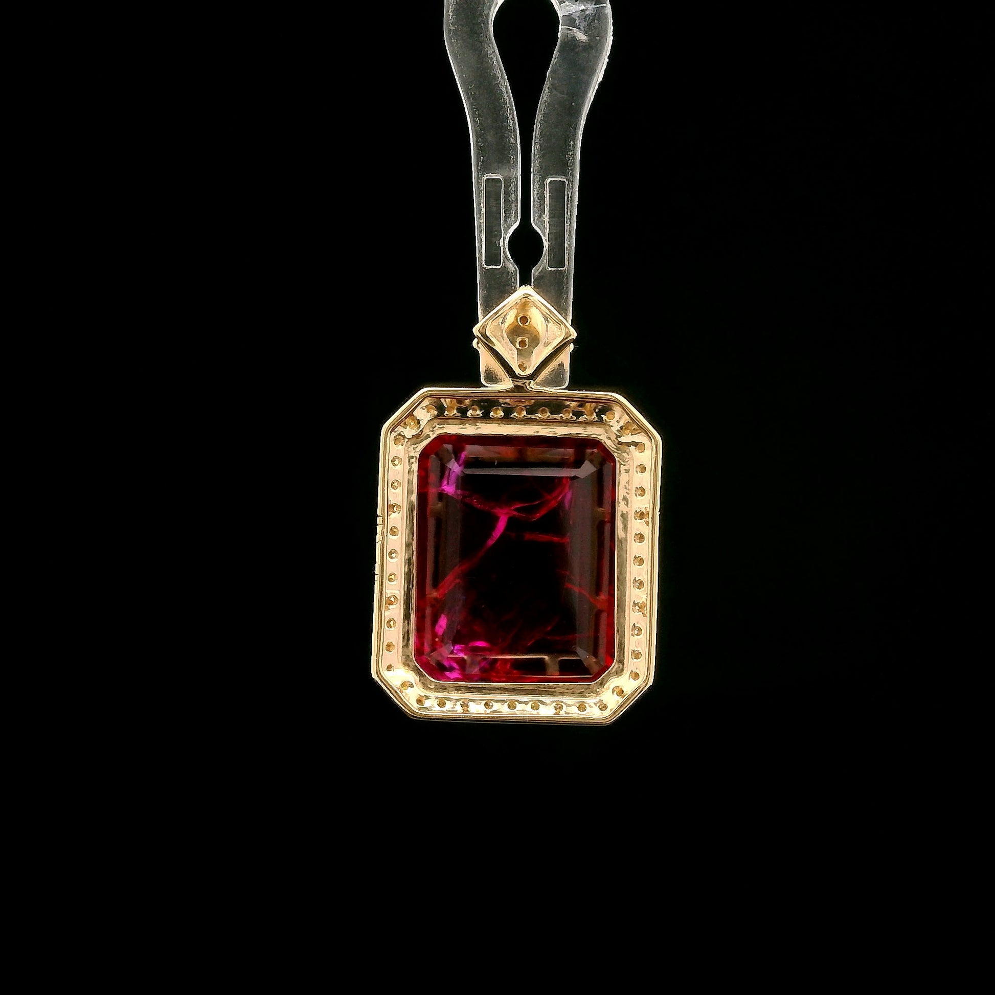 5.95 Ct Emerald Cut Lab Grown Ruby 14K Gold Pendant