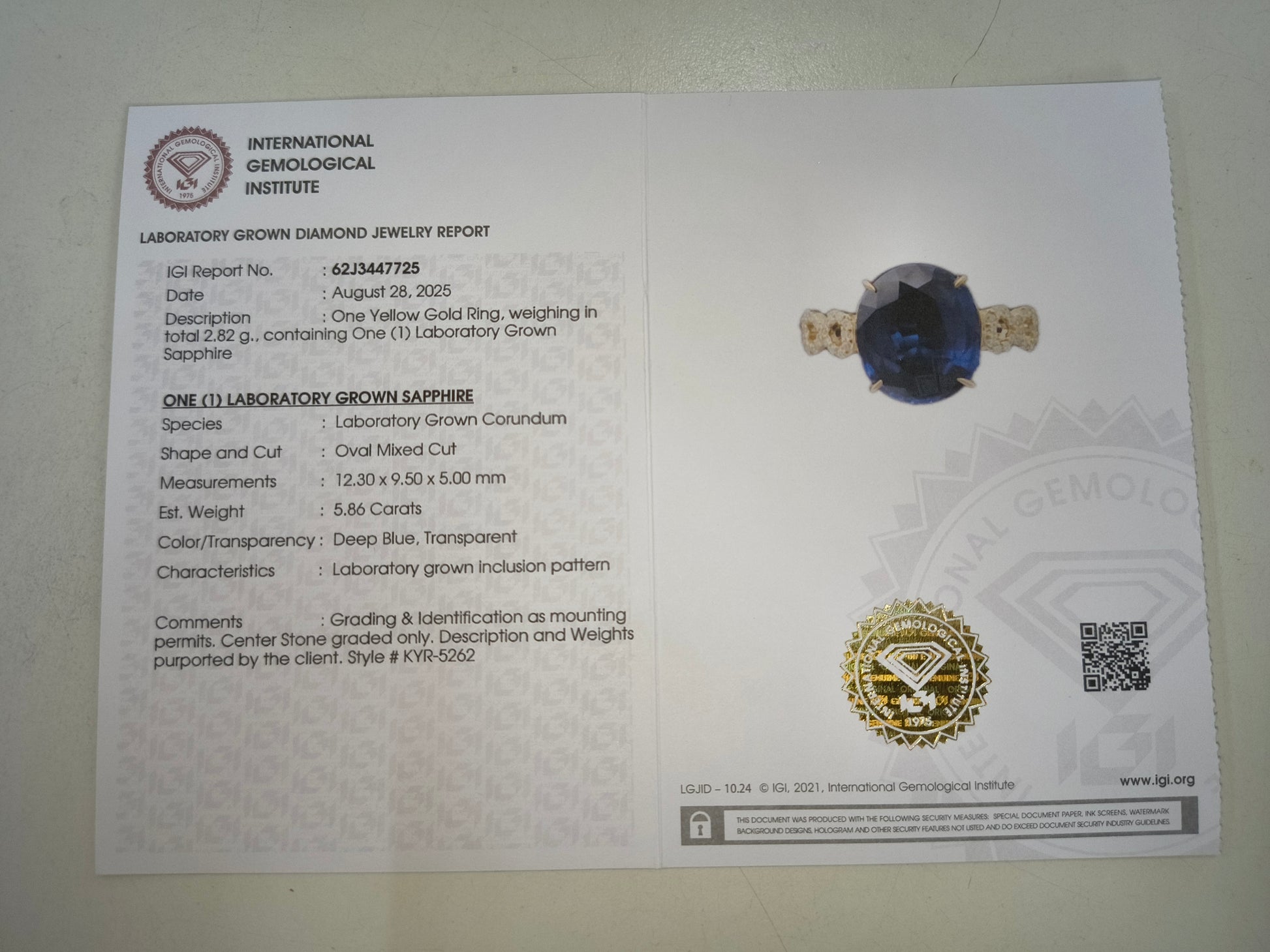 5.97 Total Carat Lab Grown Sapphire 14K Gold Ring