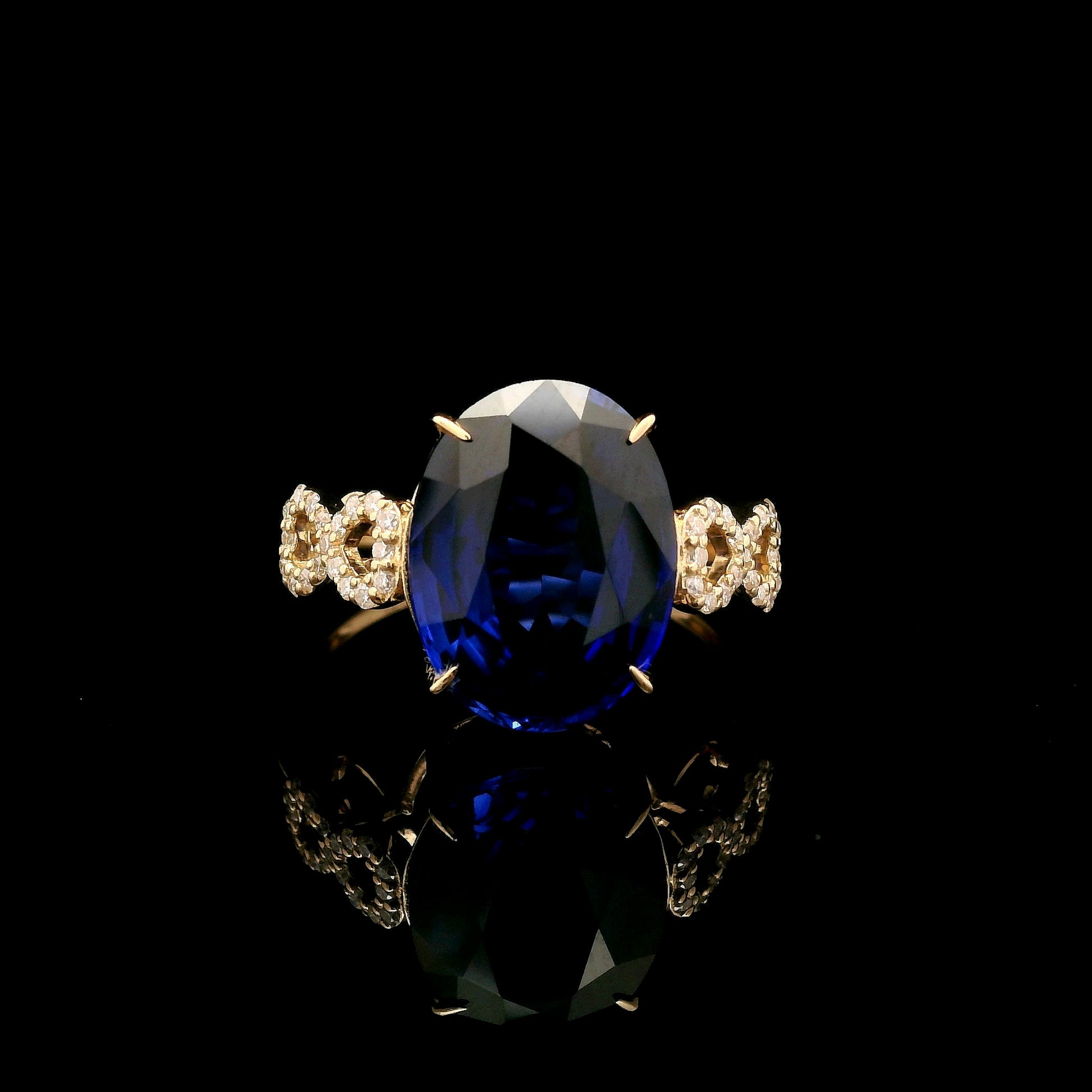 5.97 Ct Oval Mixed Cut Lab Grown Sapphire 14K Gold Ring