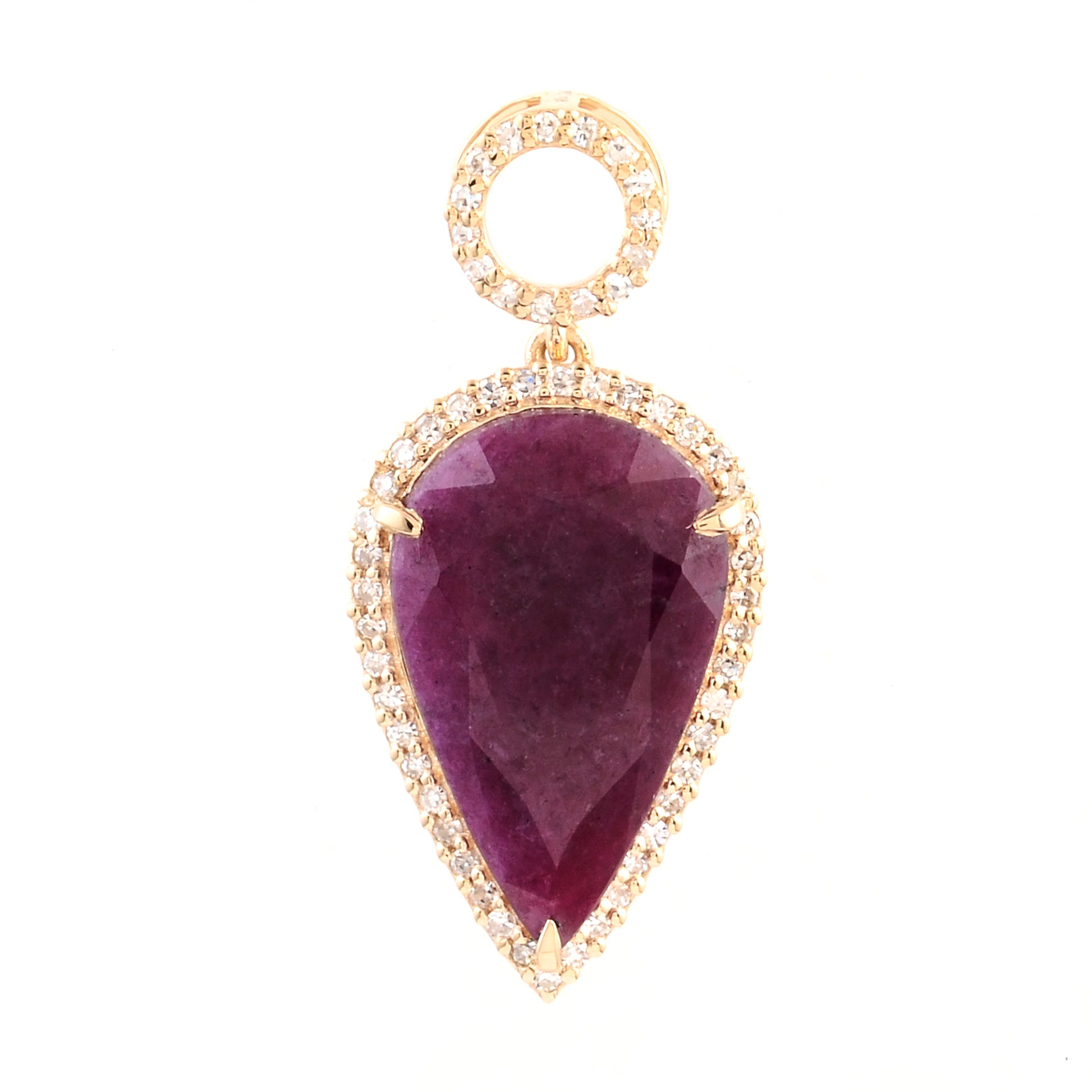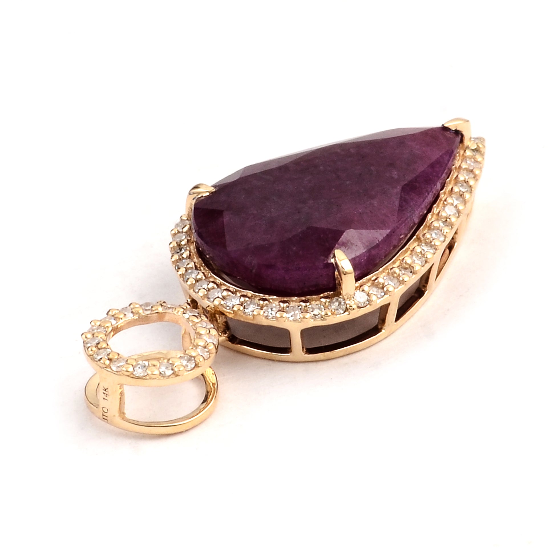 5.97 Ct Pear Mixed Cut Natural Corundum Ruby 14K Gold Pendant