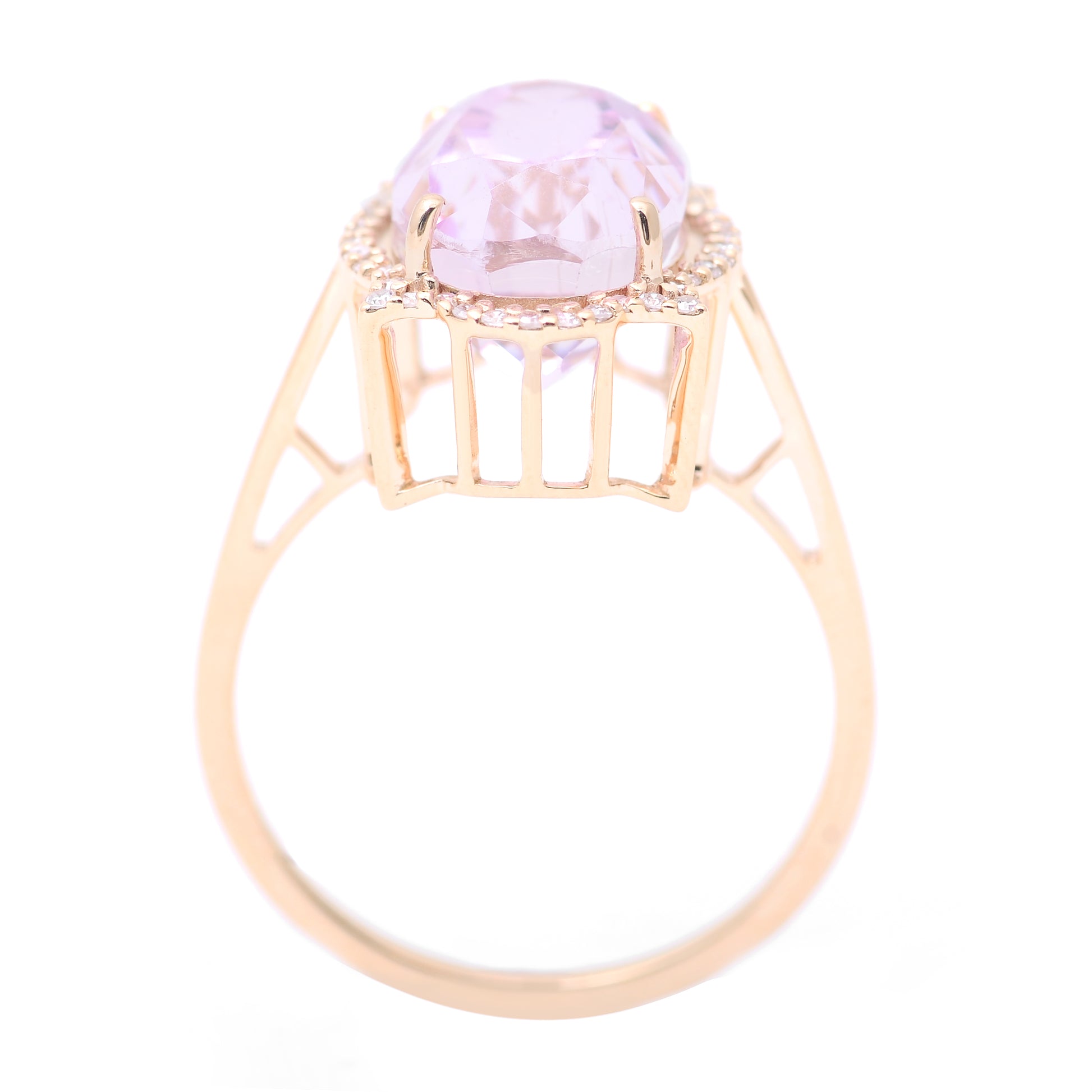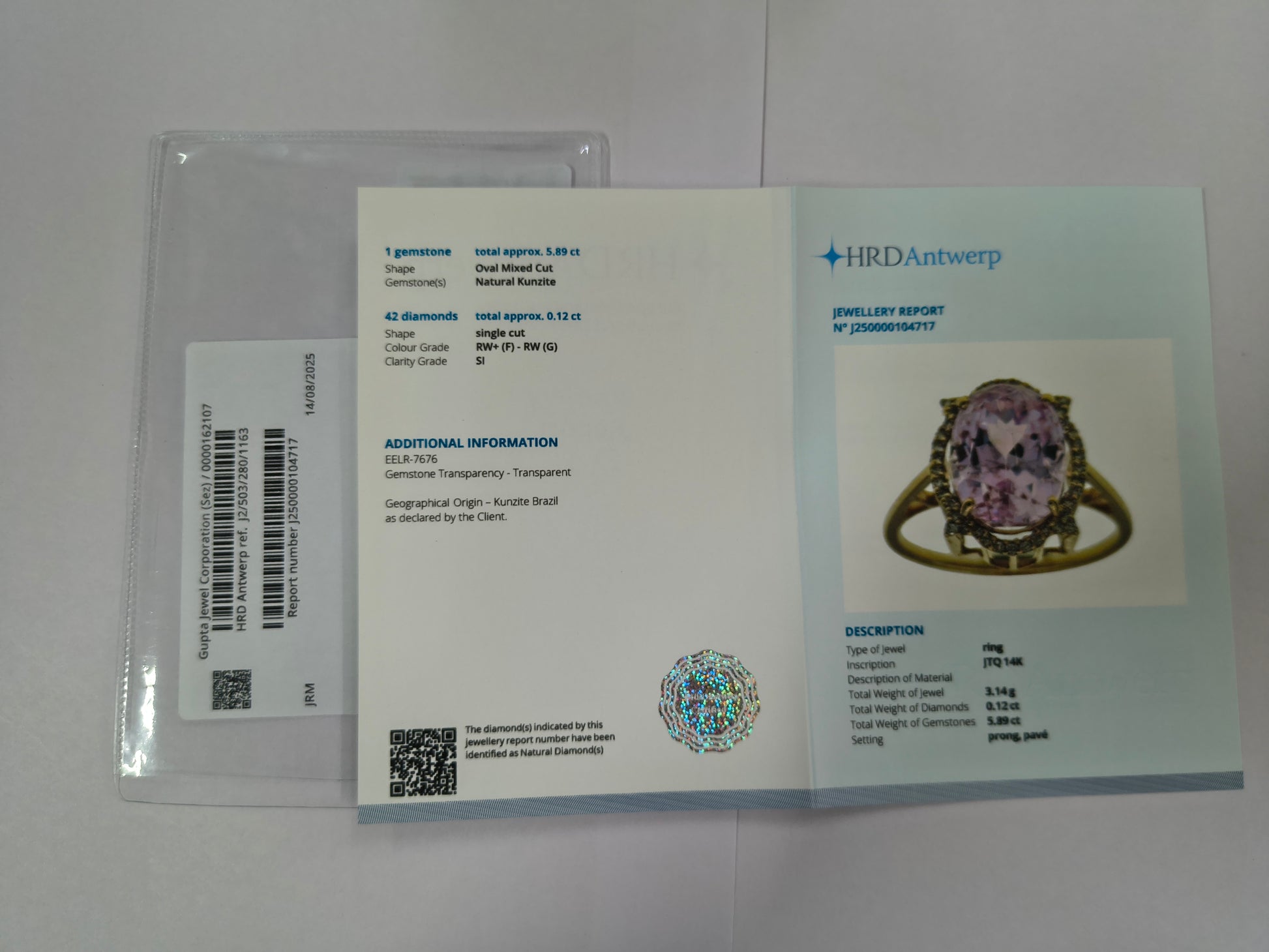 6.01 Ct Oval Mixed Cut Natural Kunzite 14K Gold Ring