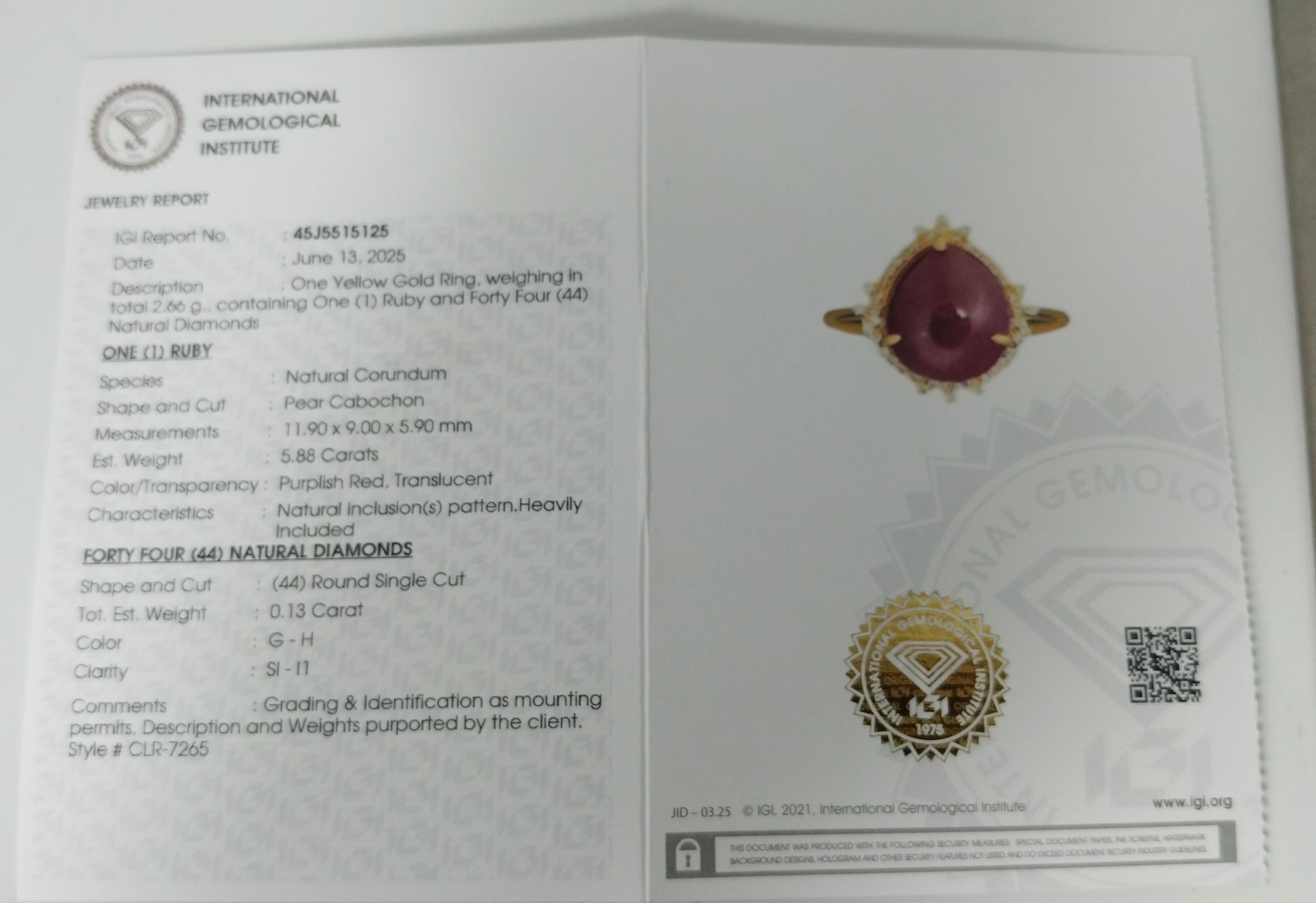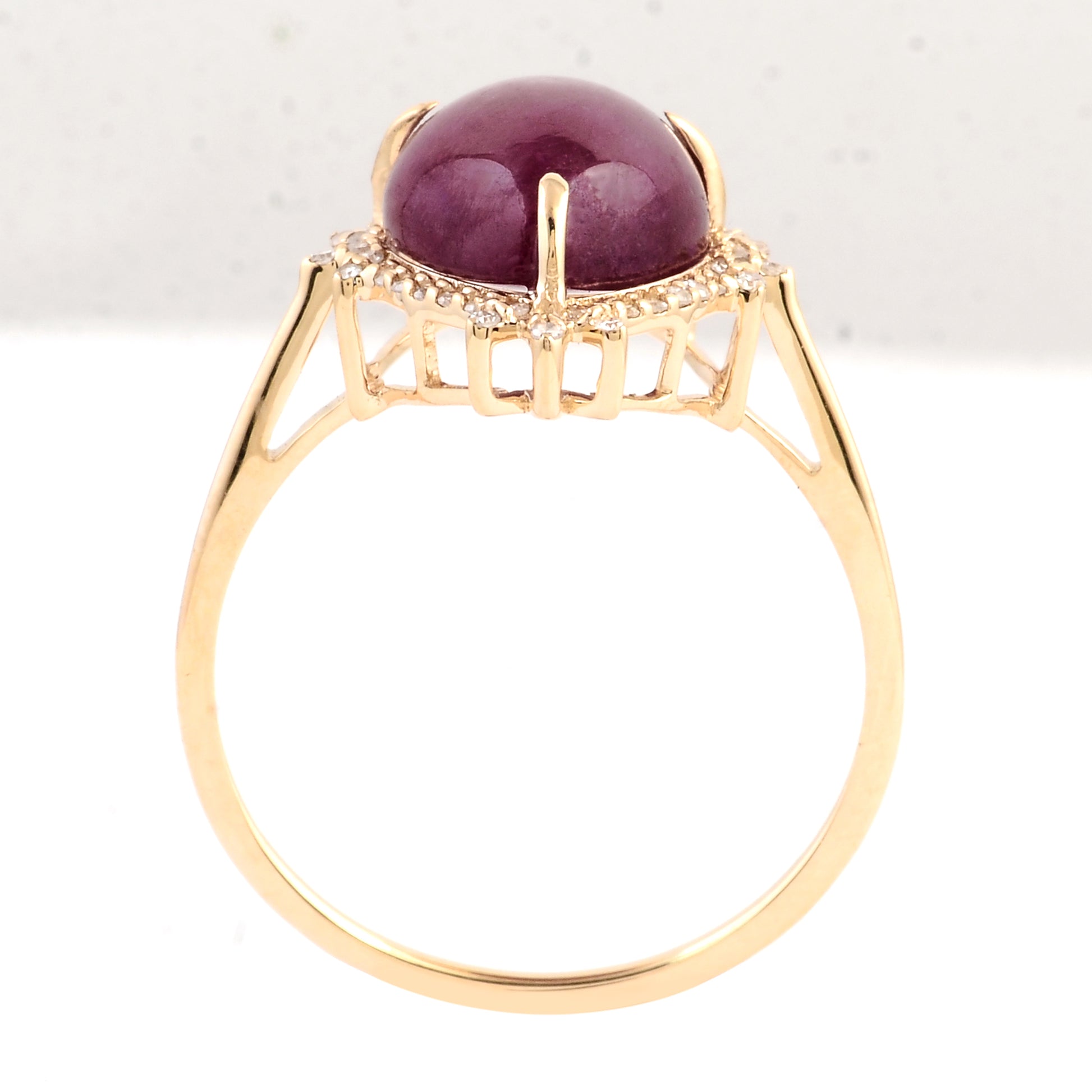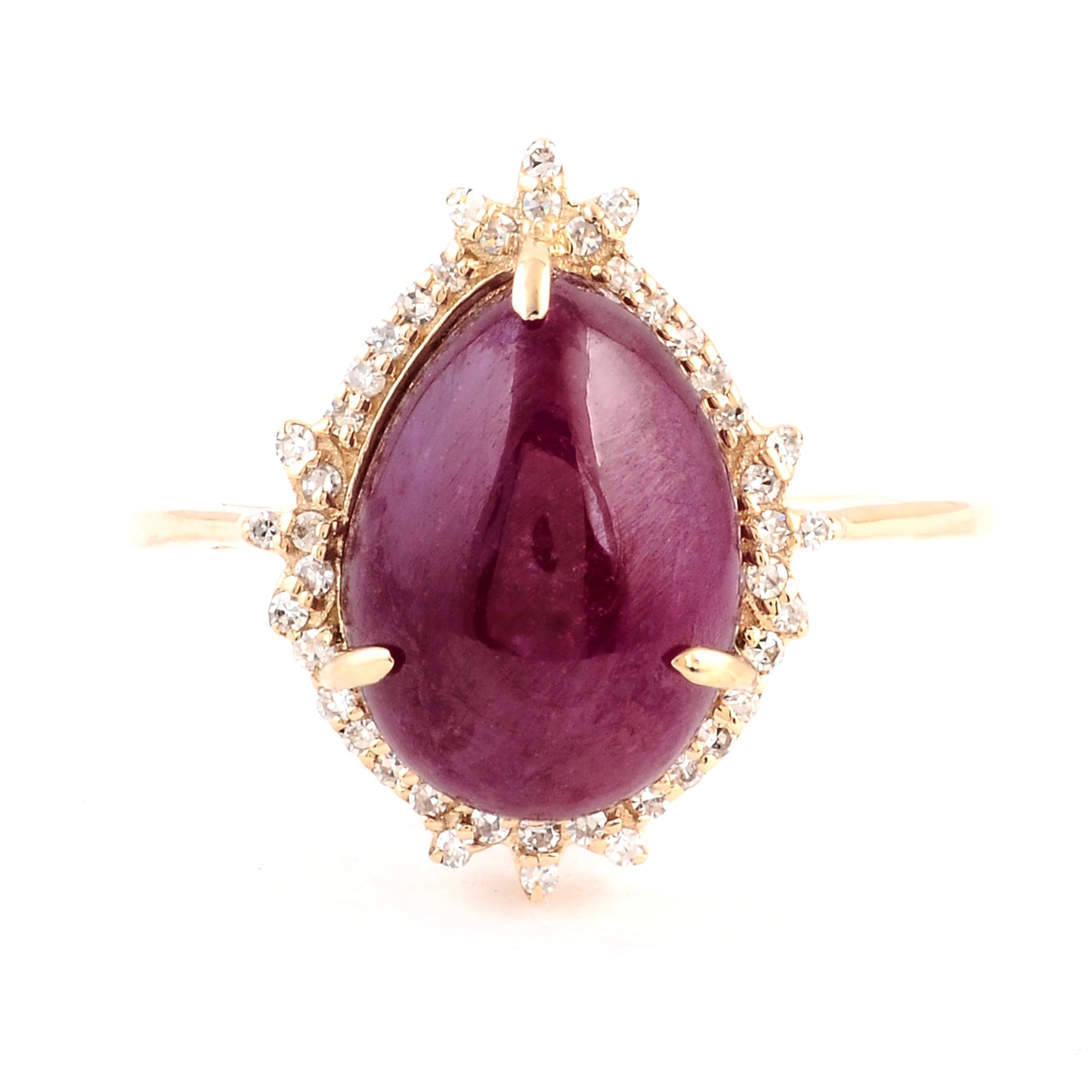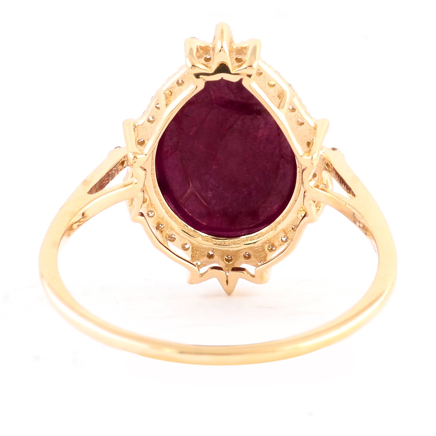 6.01 Ct Pear Cabochon Natural Corundum Ruby 14K Gold Ring
