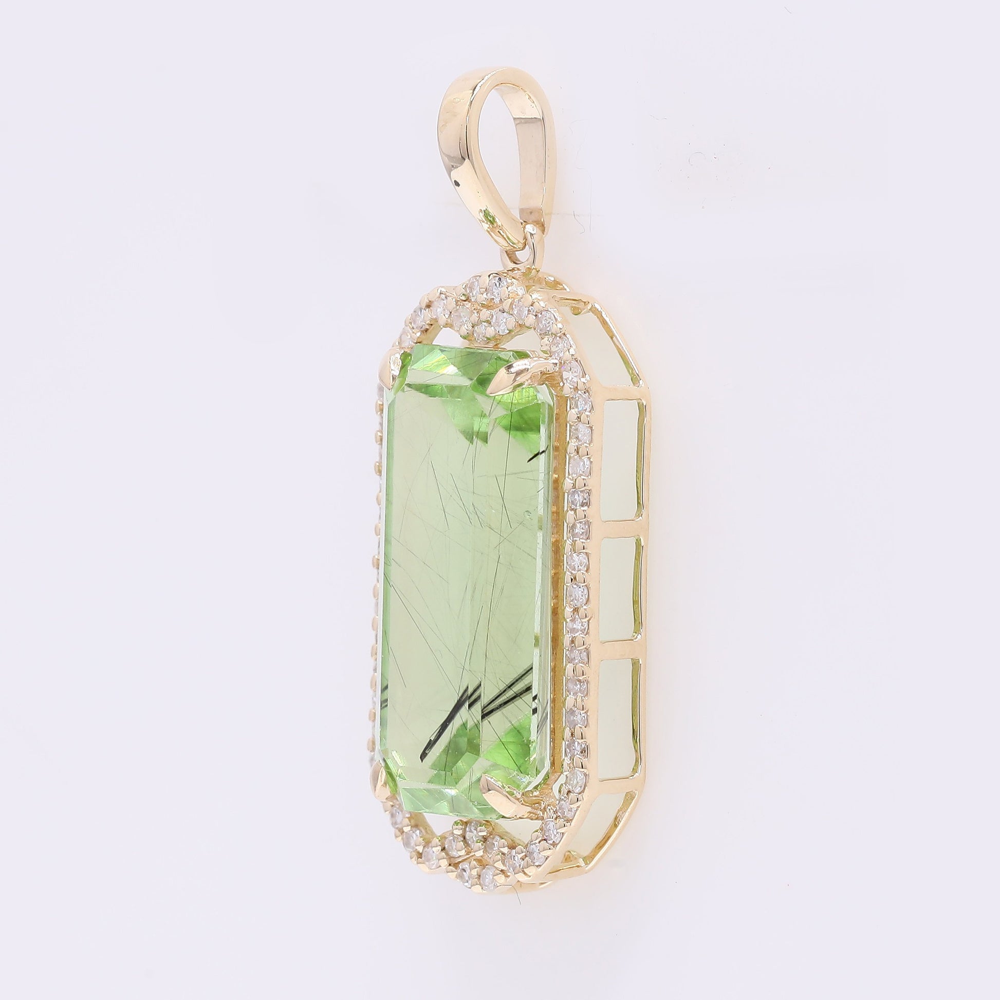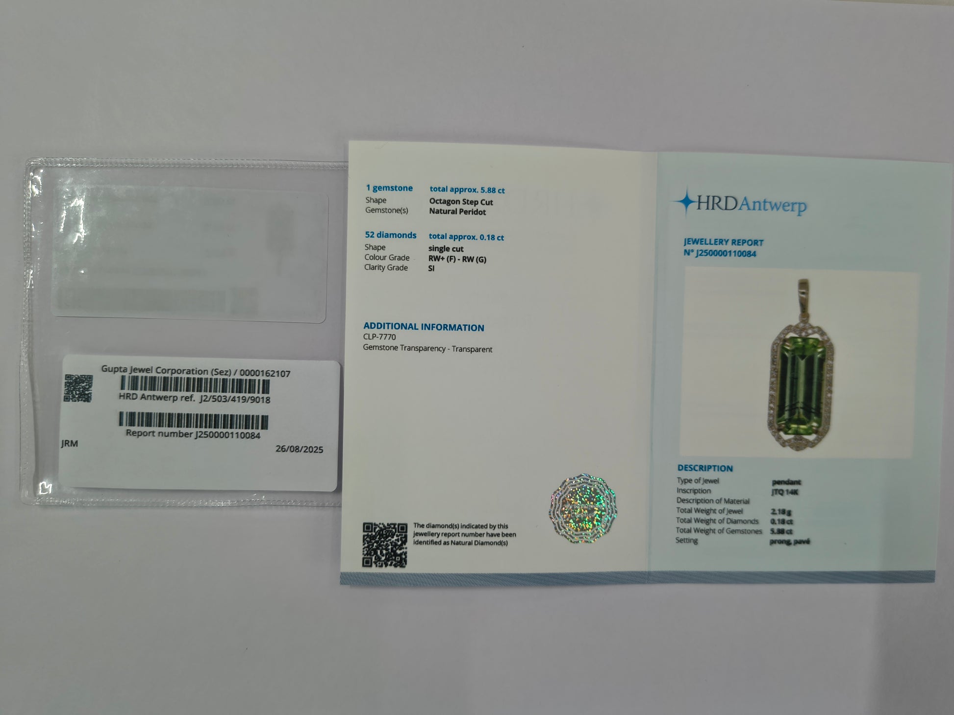 6.06 Ct Octagon Step Cut Natural Peridot 14K Gold Pendant