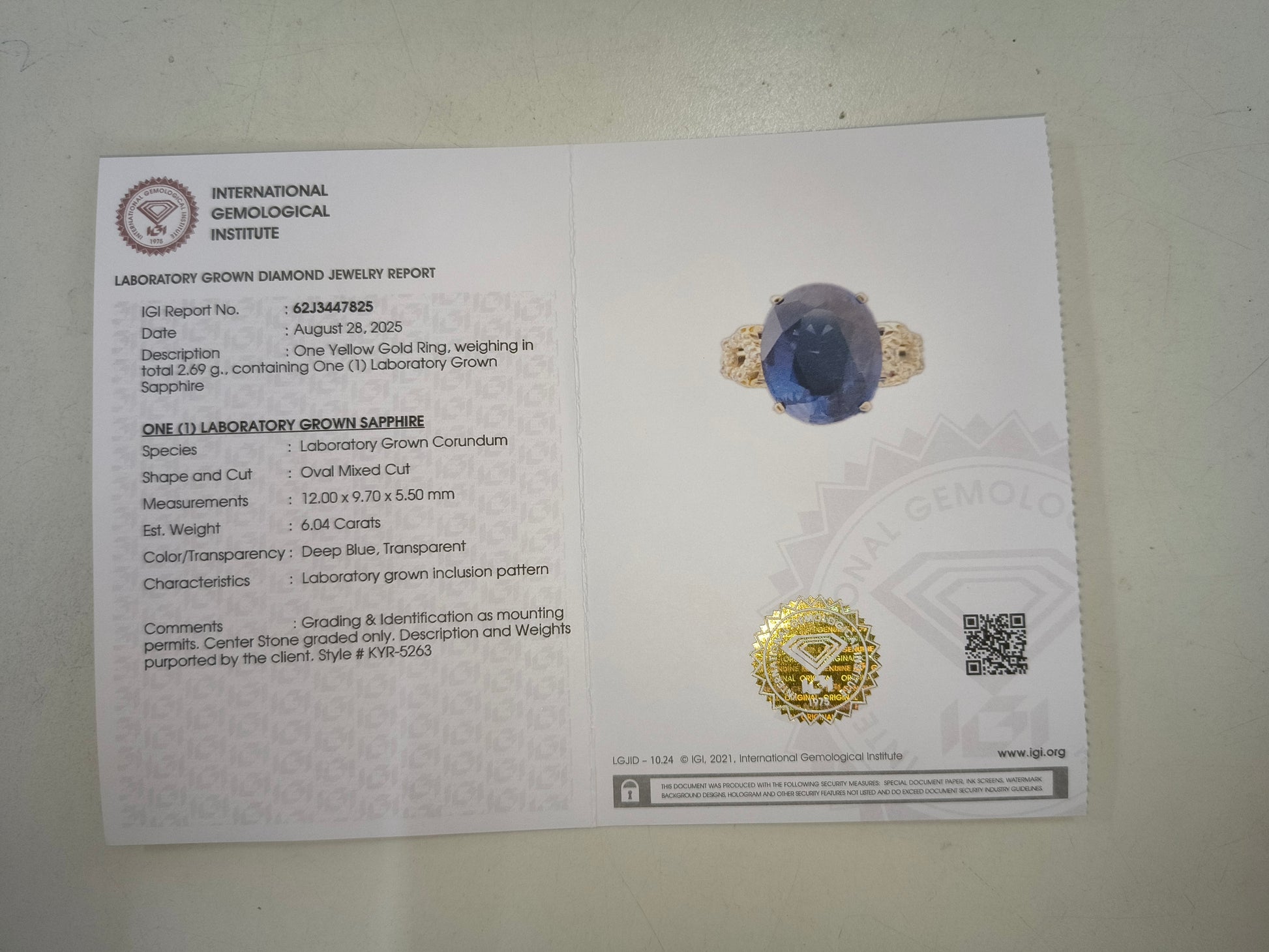 6.10 Total Carat Lab Grown Sapphire 14K Gold Ring