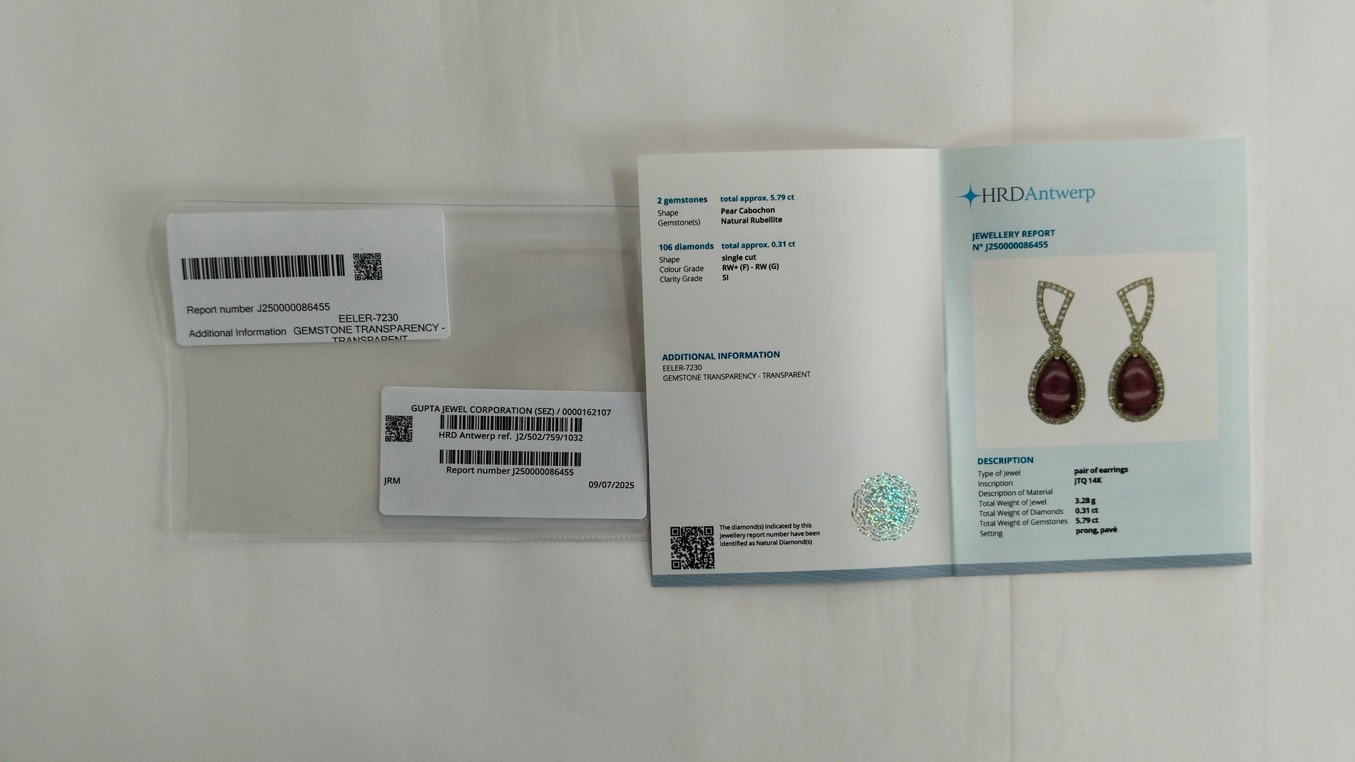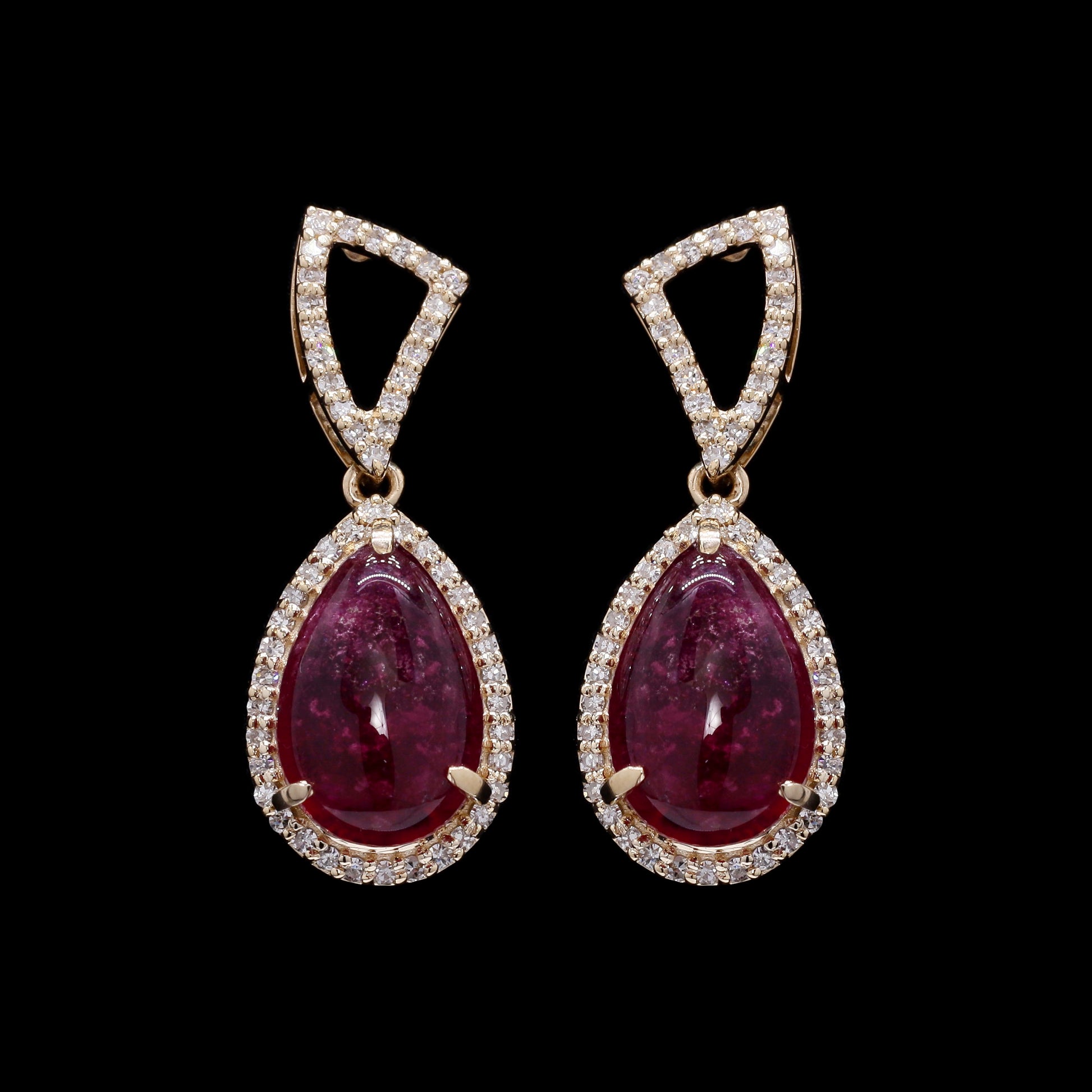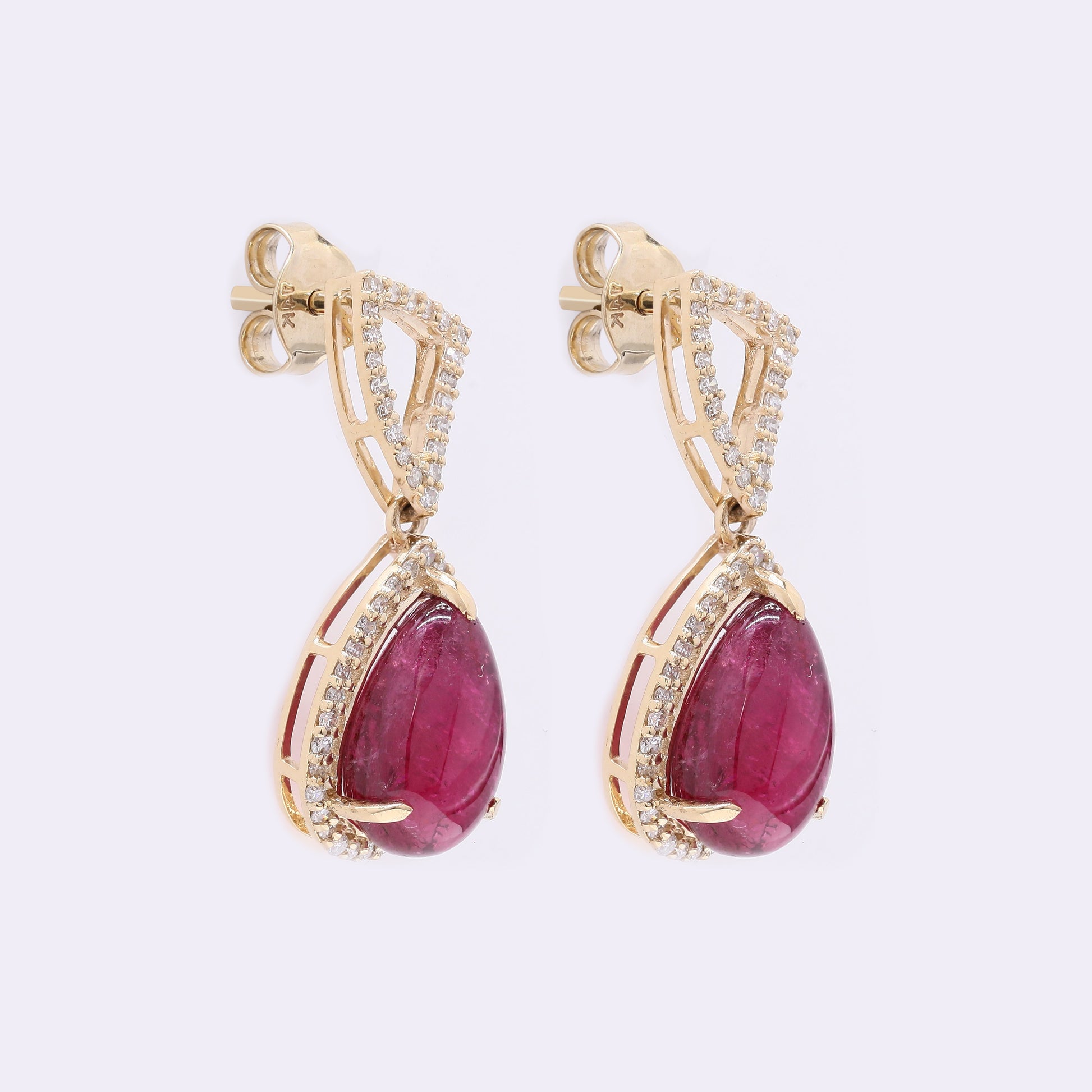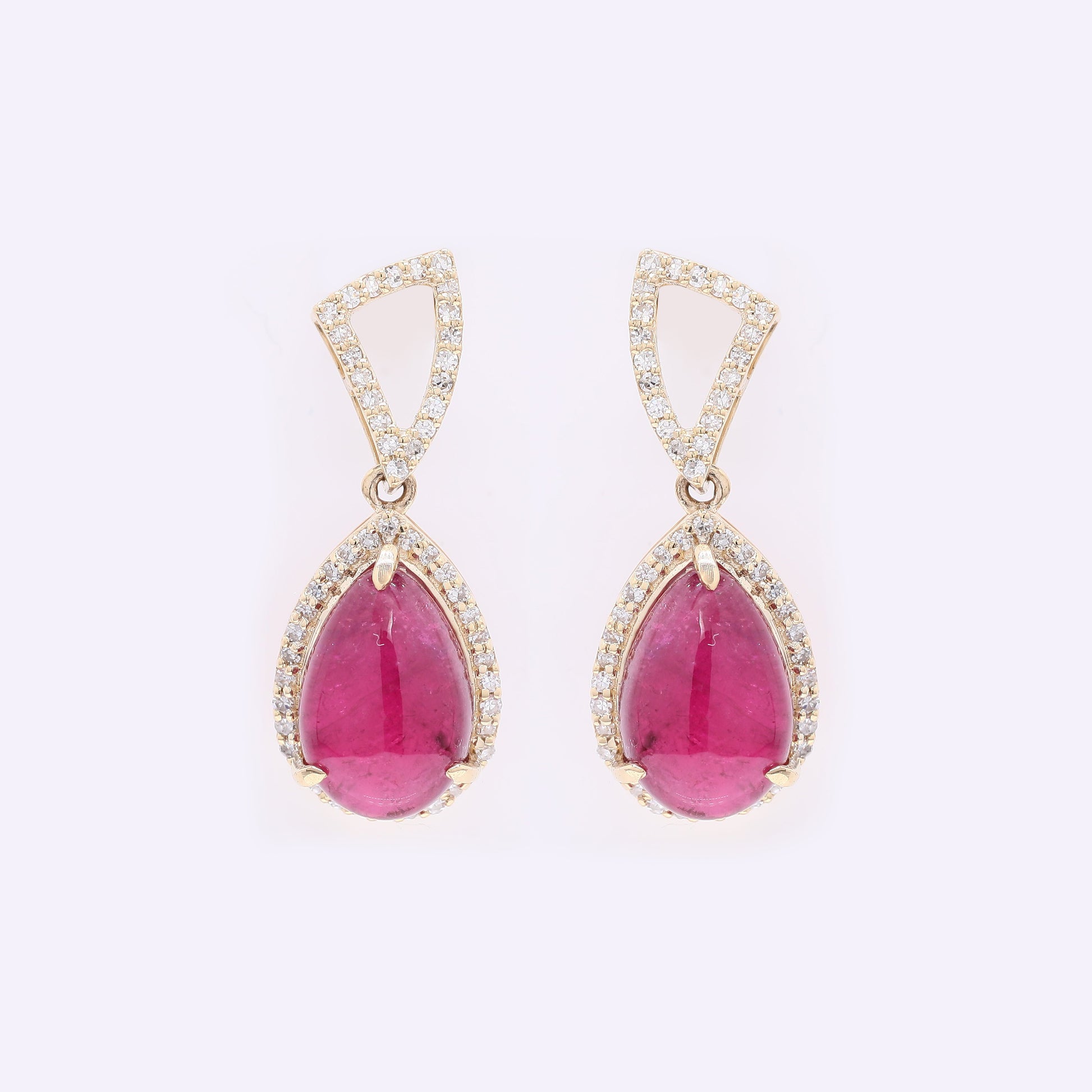 6.10 Ct Pear Cabochon Natural Rubellite 14K Gold Earrings