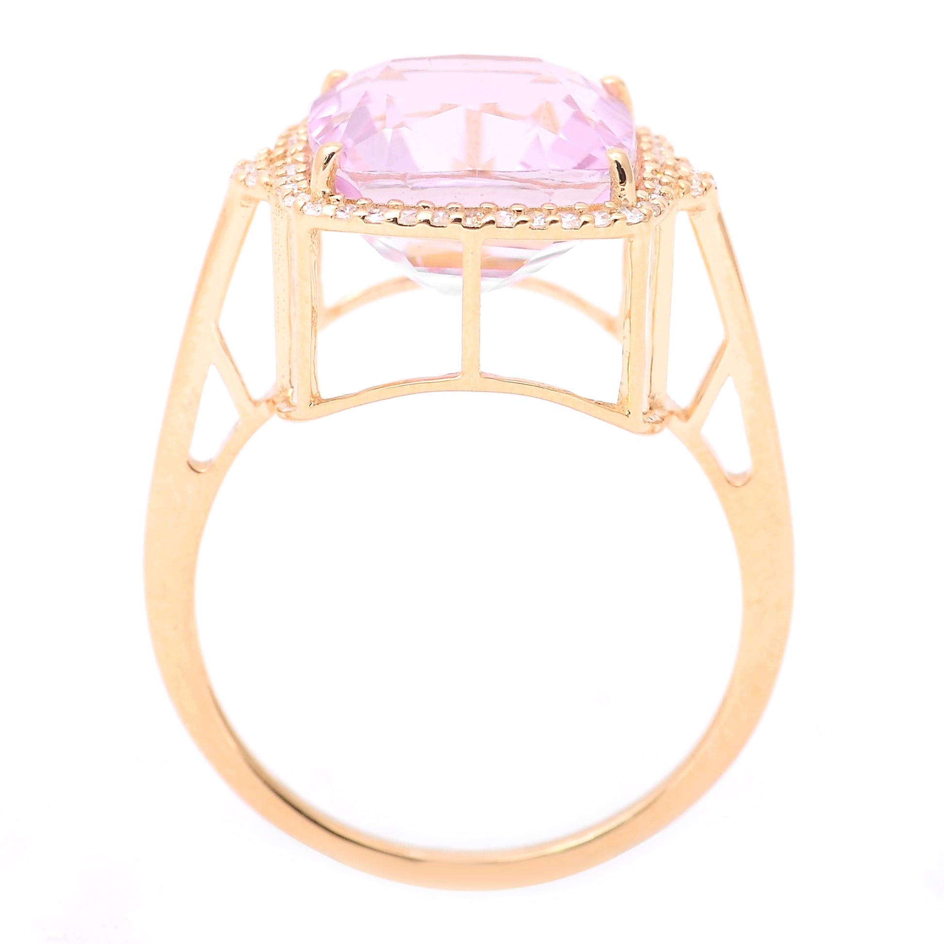 6.12 Ct Cushion Mixed Cut Natural Kunzite 14K Gold Ring