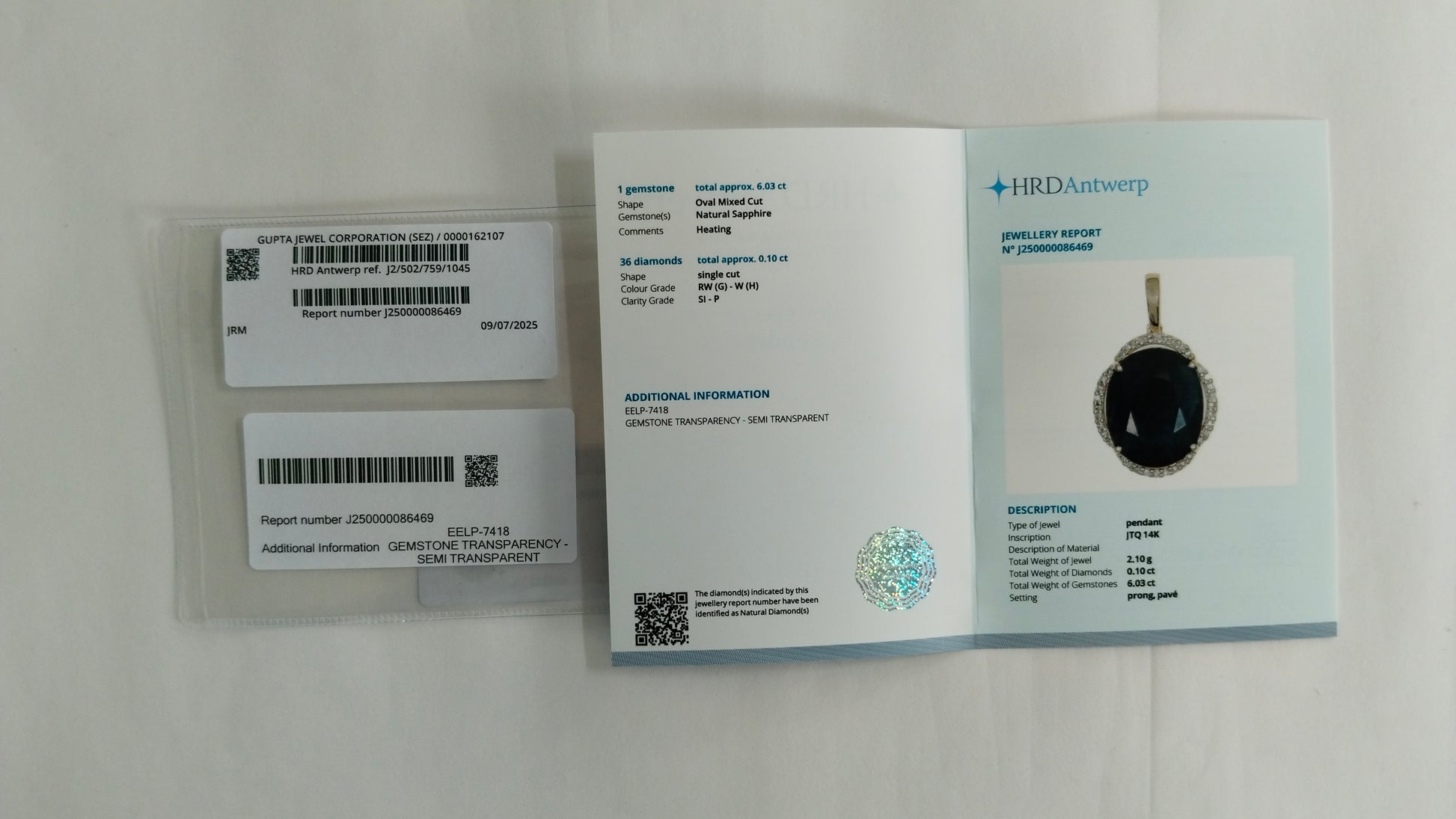 6.13 Ct Oval Mixed Cut Natural Sapphire 14K Gold Pendant