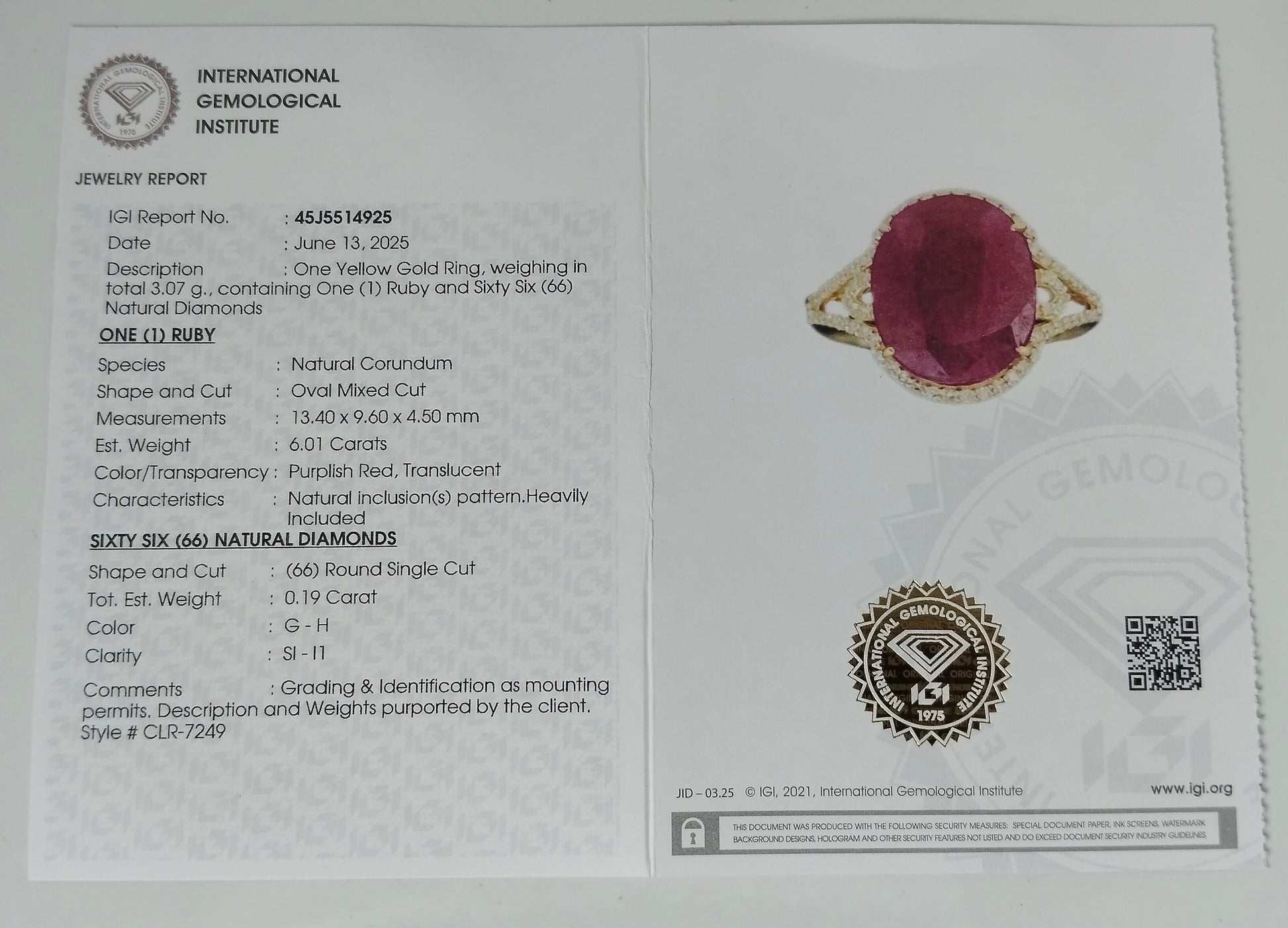 - Lab Name: International Gemological Institute (IGI)