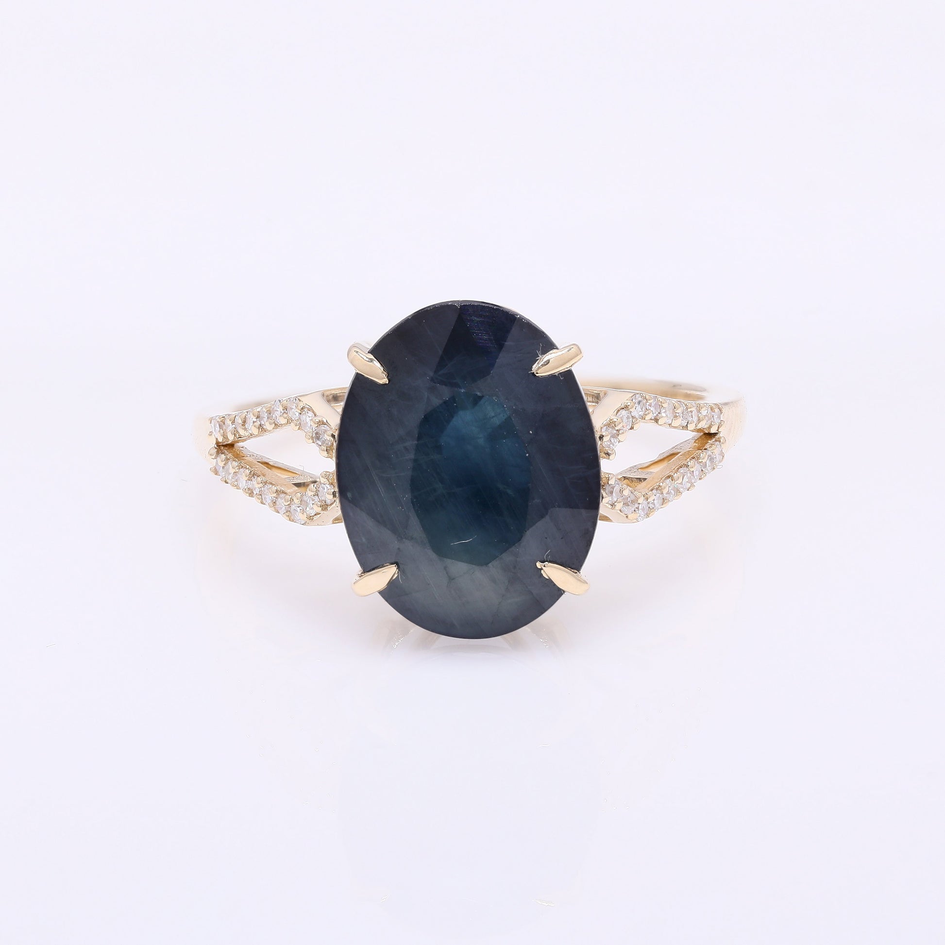6.20 Ct Oval Mixed Cut Natural Corundum Sapphire 14K Gold Ring