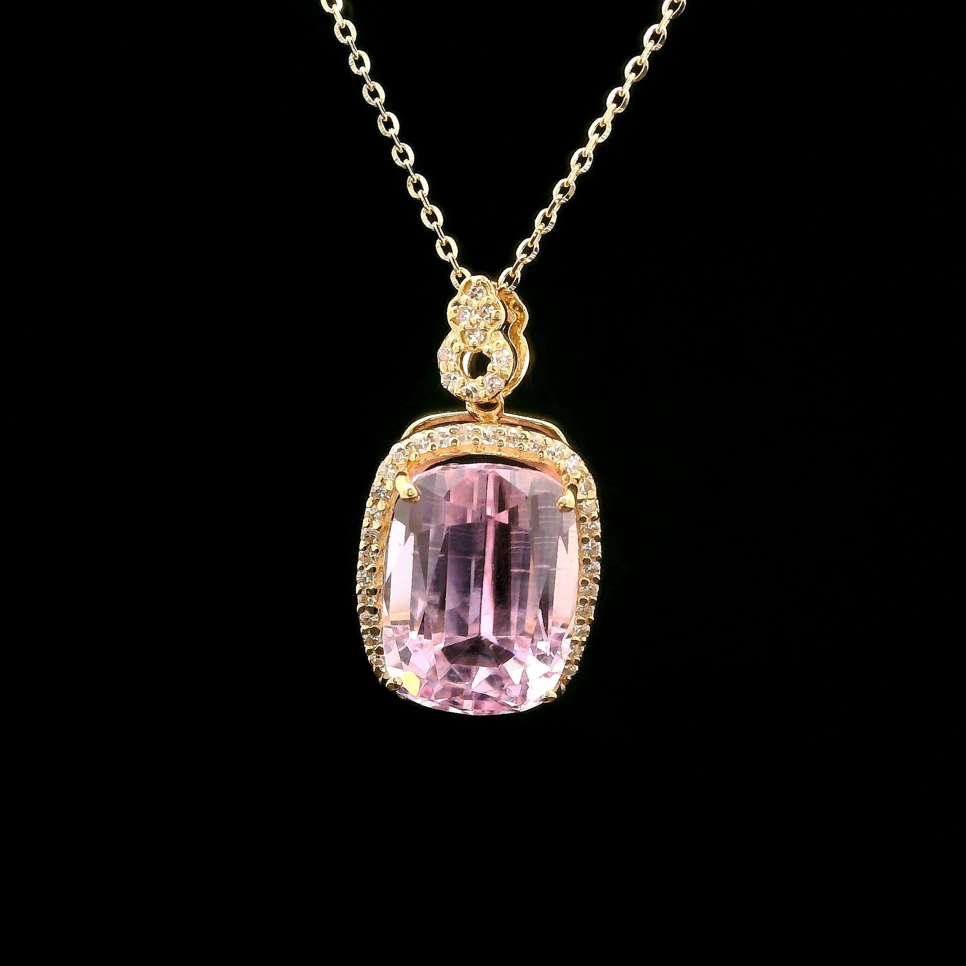 6.22 Ct Cushion Kunzite 14K Gold Pendant