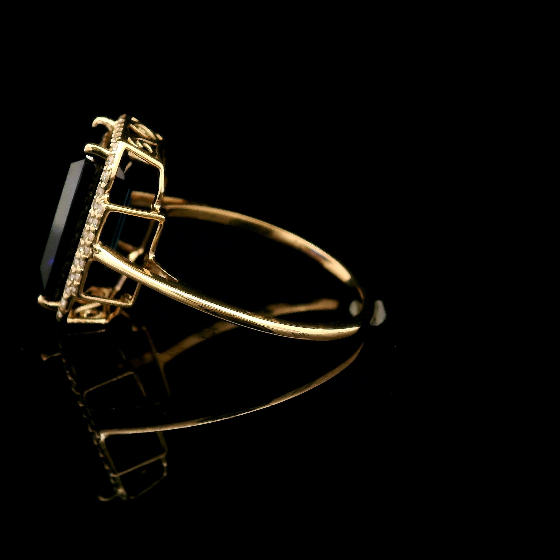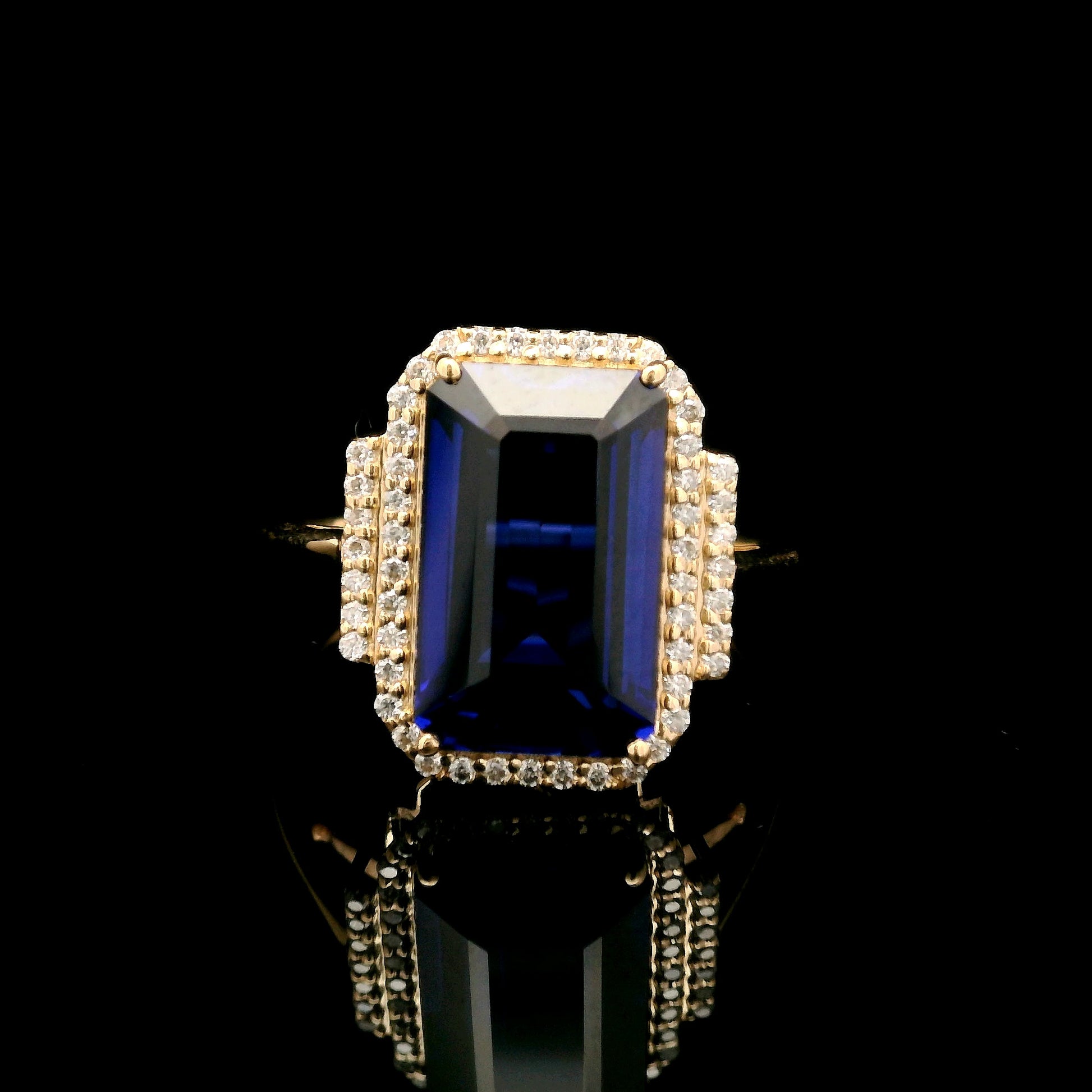 6.24 Ct Emerald Cut Lab Grown Sapphire 14K Gold Ring