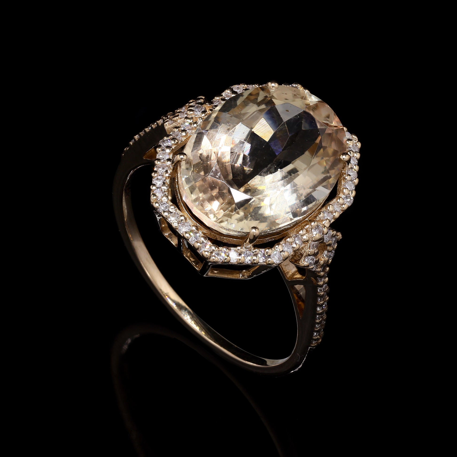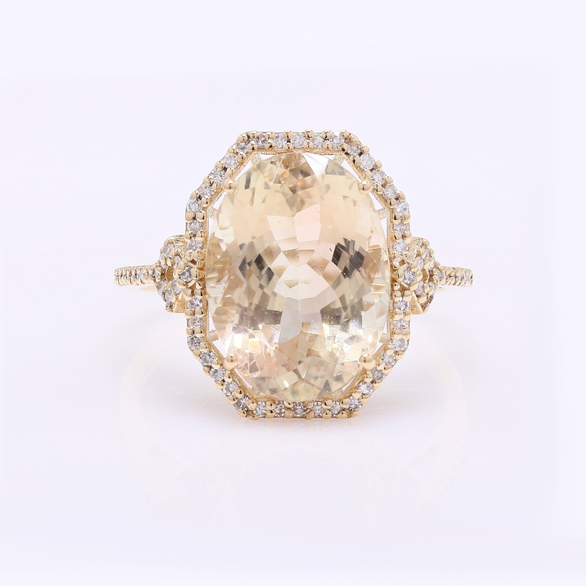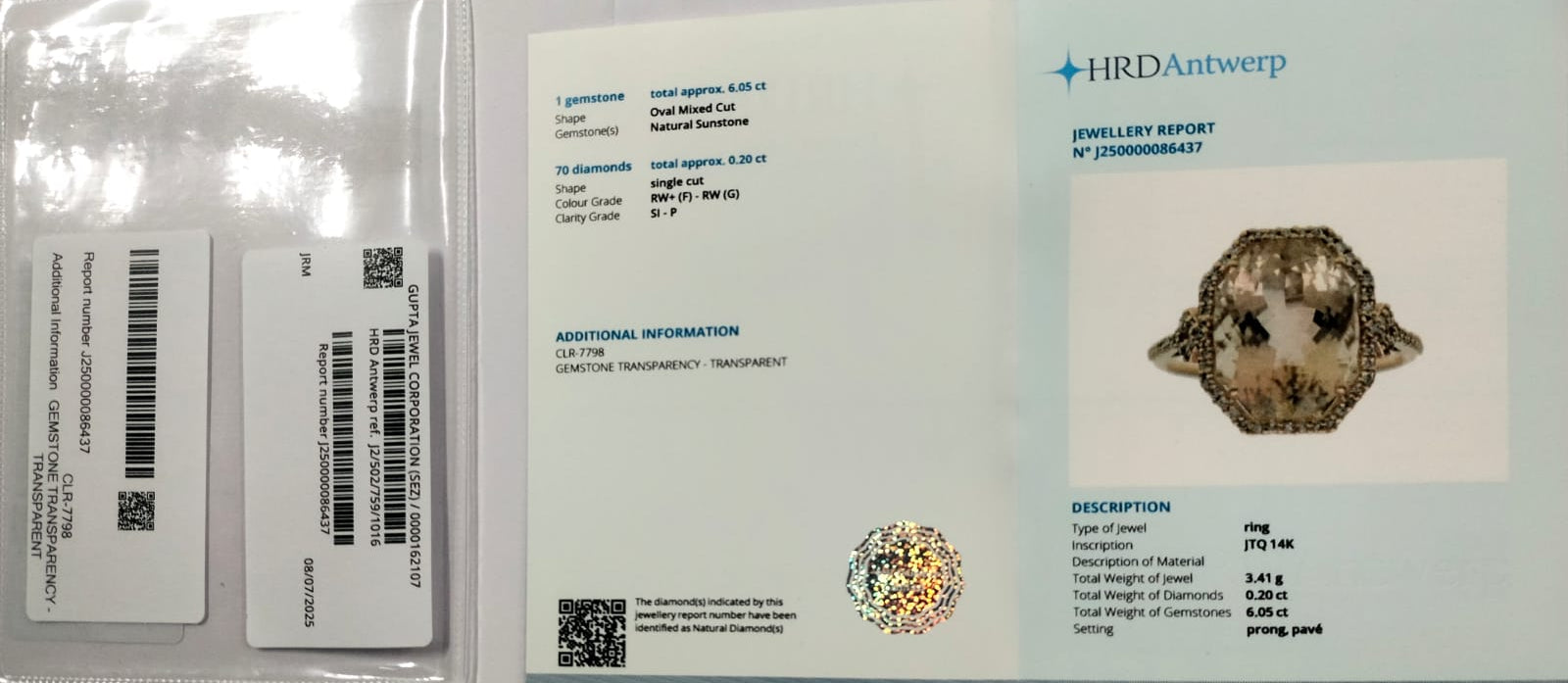6.25 Ct Oval Mixed Cut Natural Sunstone 14K Gold Ring