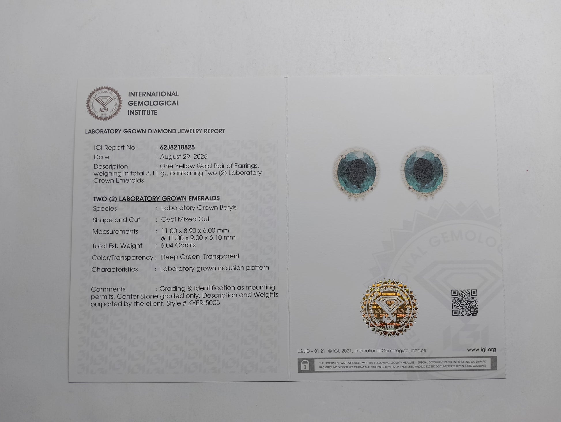 - Lab Name: International Gemological Institute (IGI)