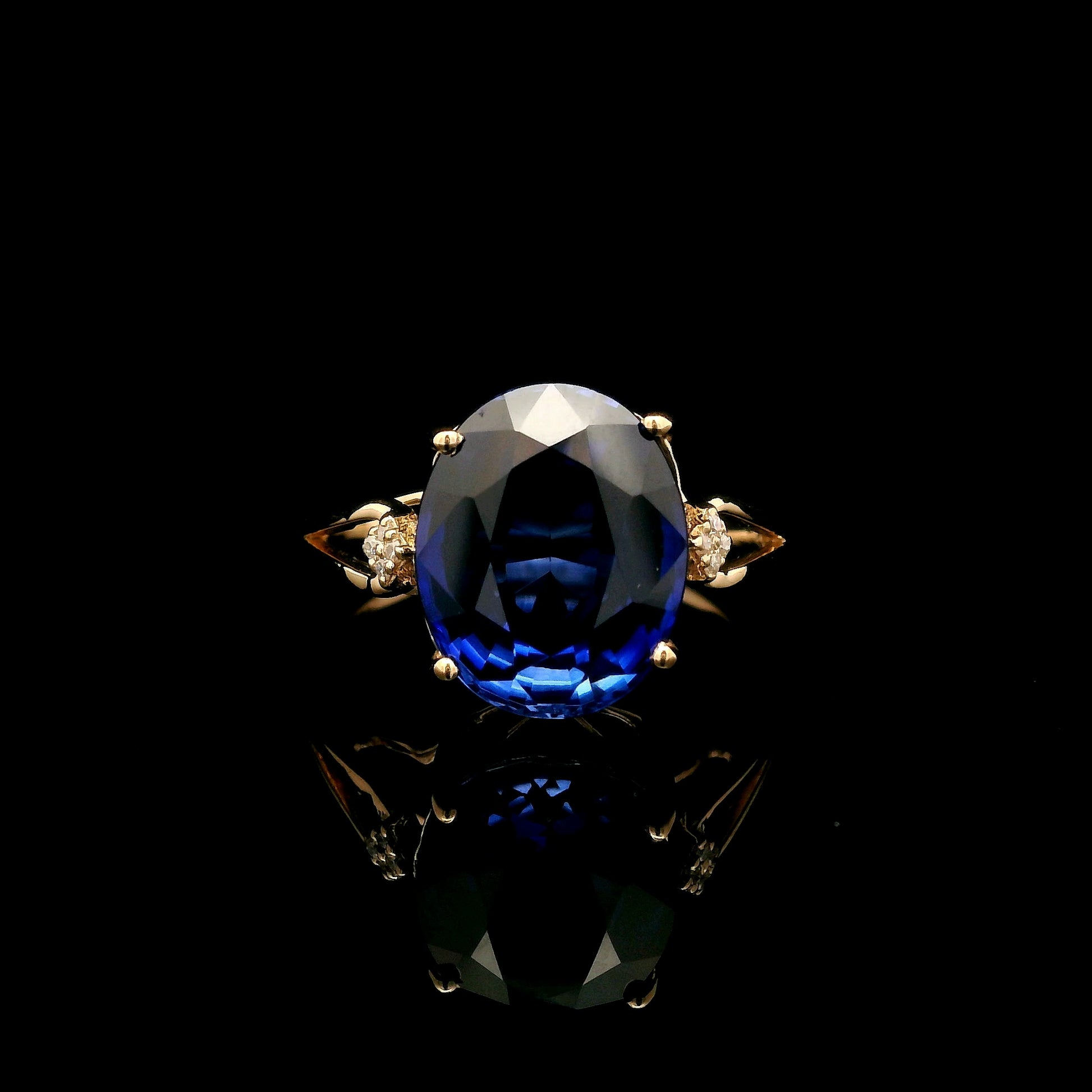 6.28 Ct Oval Mixed Cut Lab Grown Sapphire 14K Gold Ring