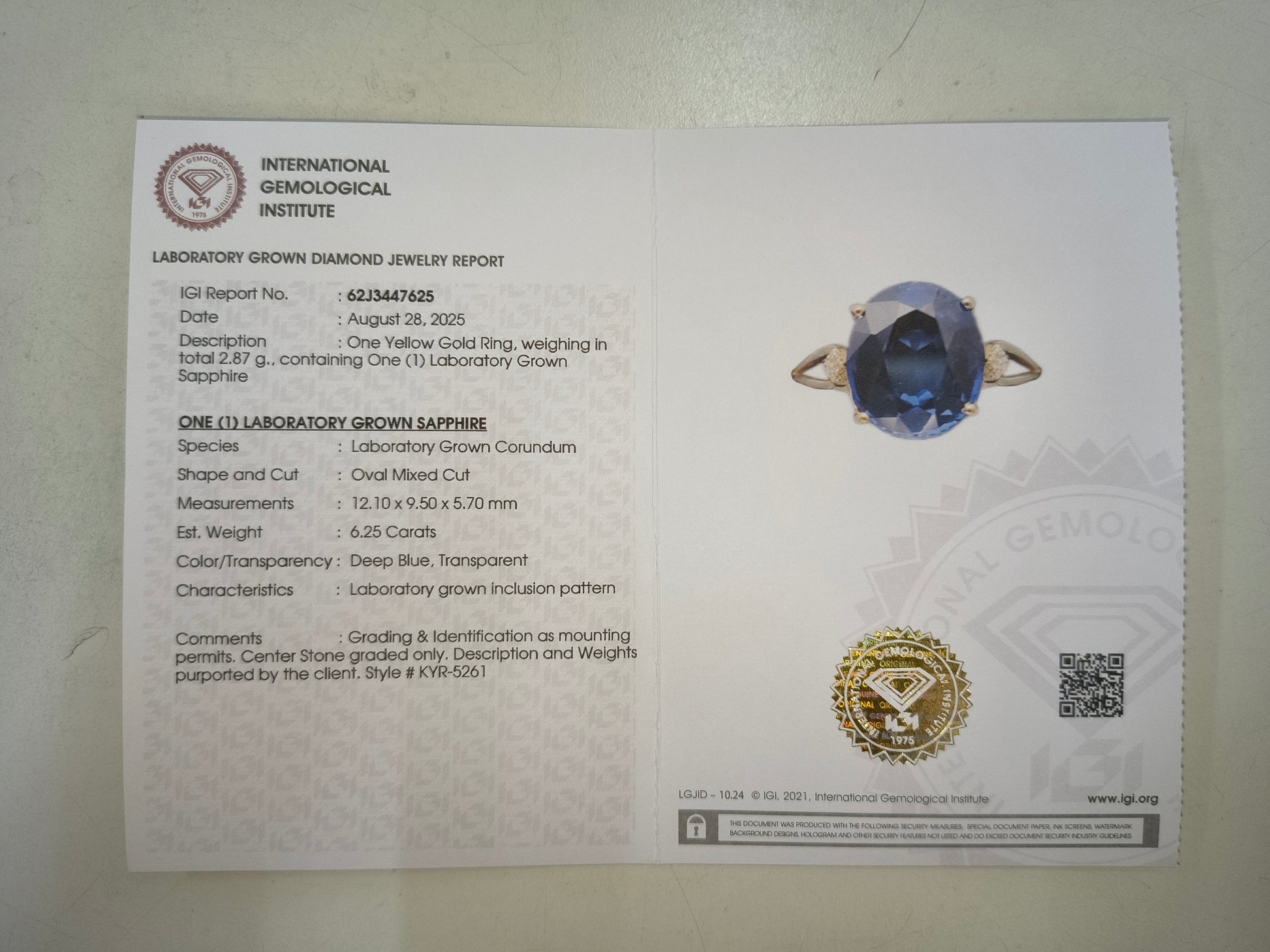 6.28 Total Carat Lab Grown Sapphire 14K Gold Ring