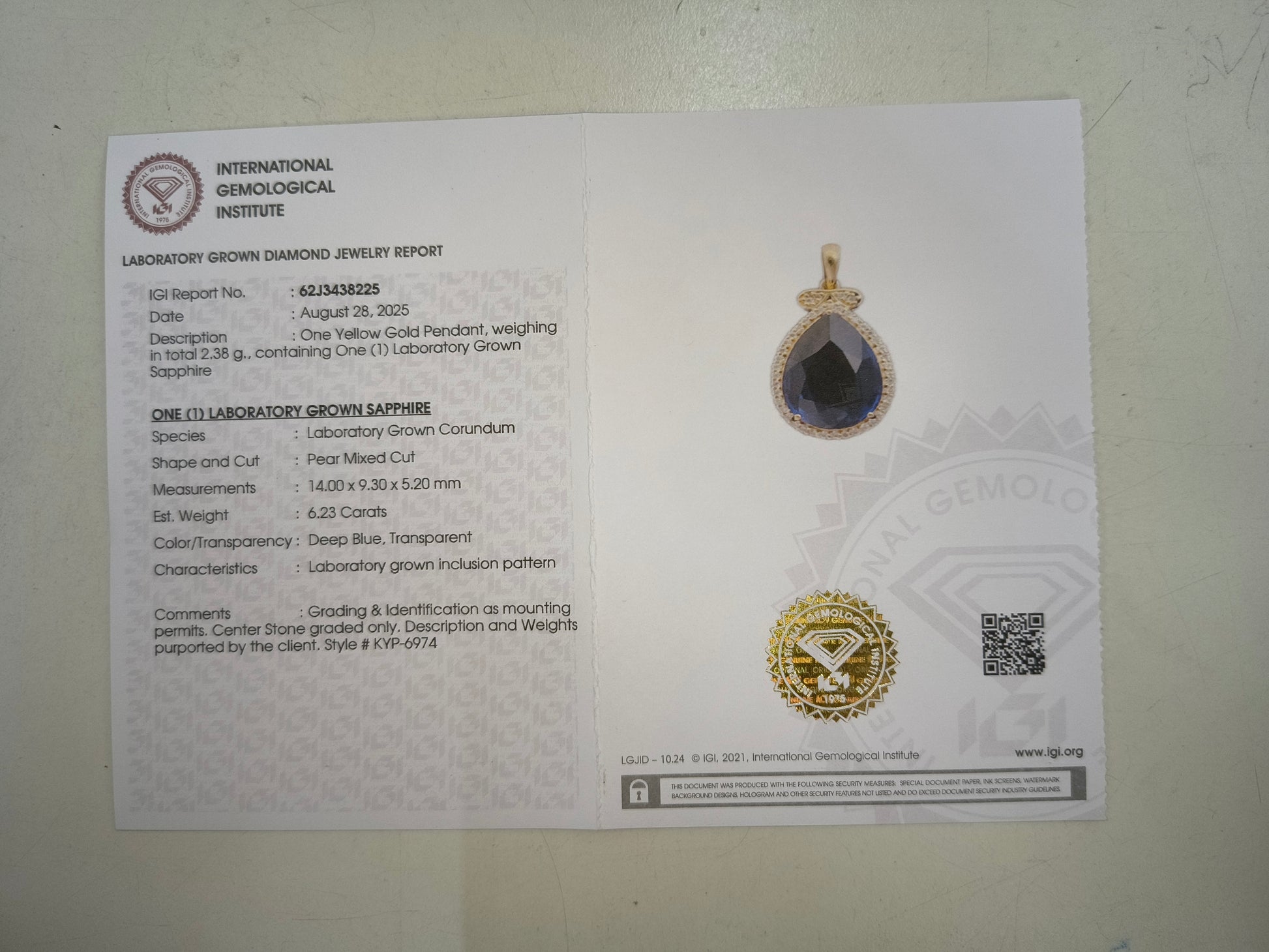 - Lab Name: International Gemological Institute (IGI)
