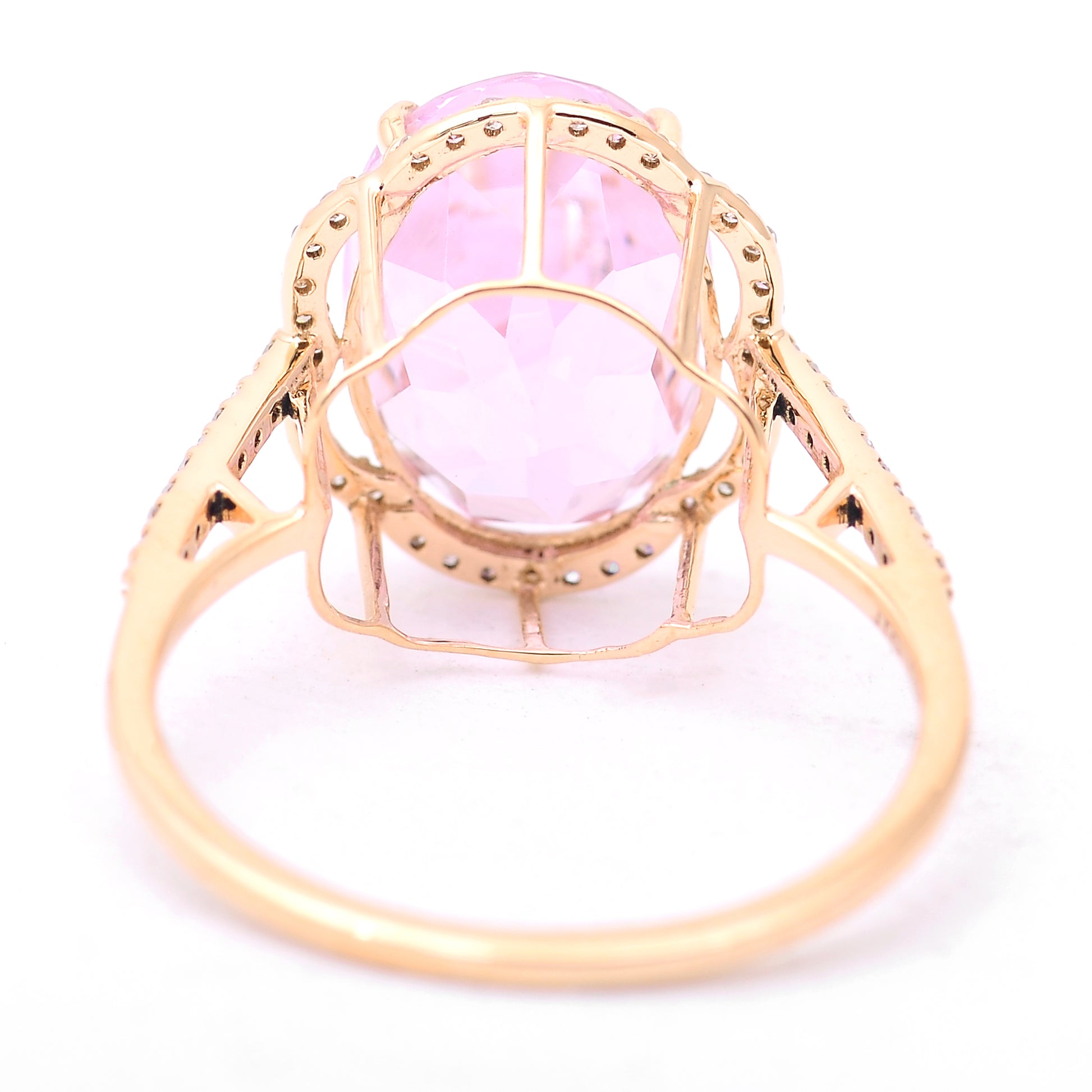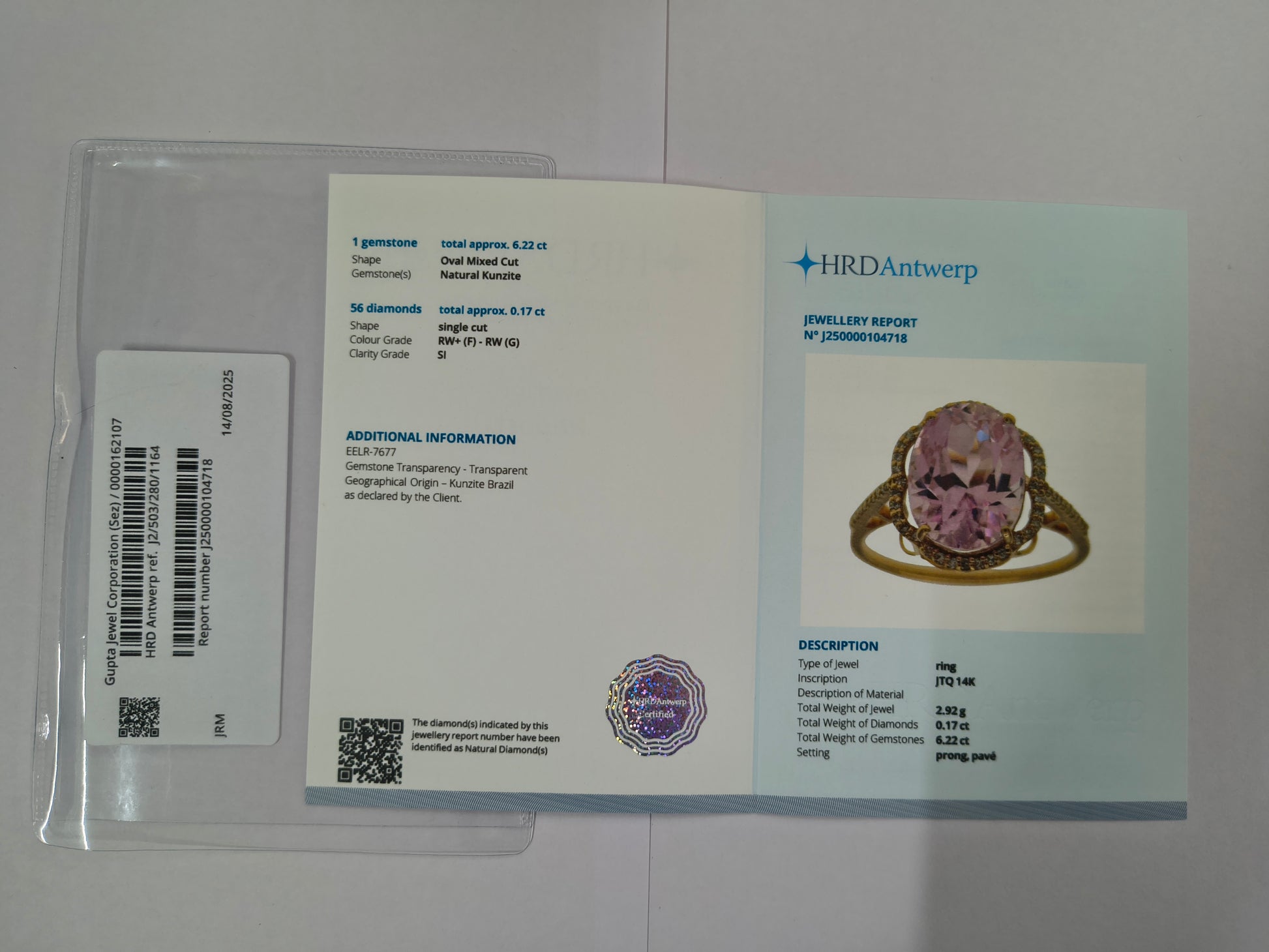 6.39 Ct Oval Mixed Cut Natural Kunzite 14K Gold Ring