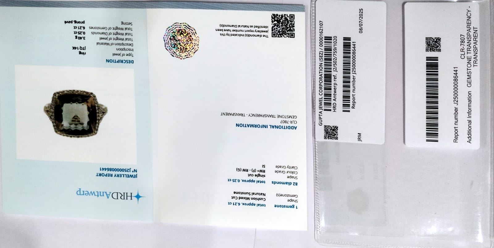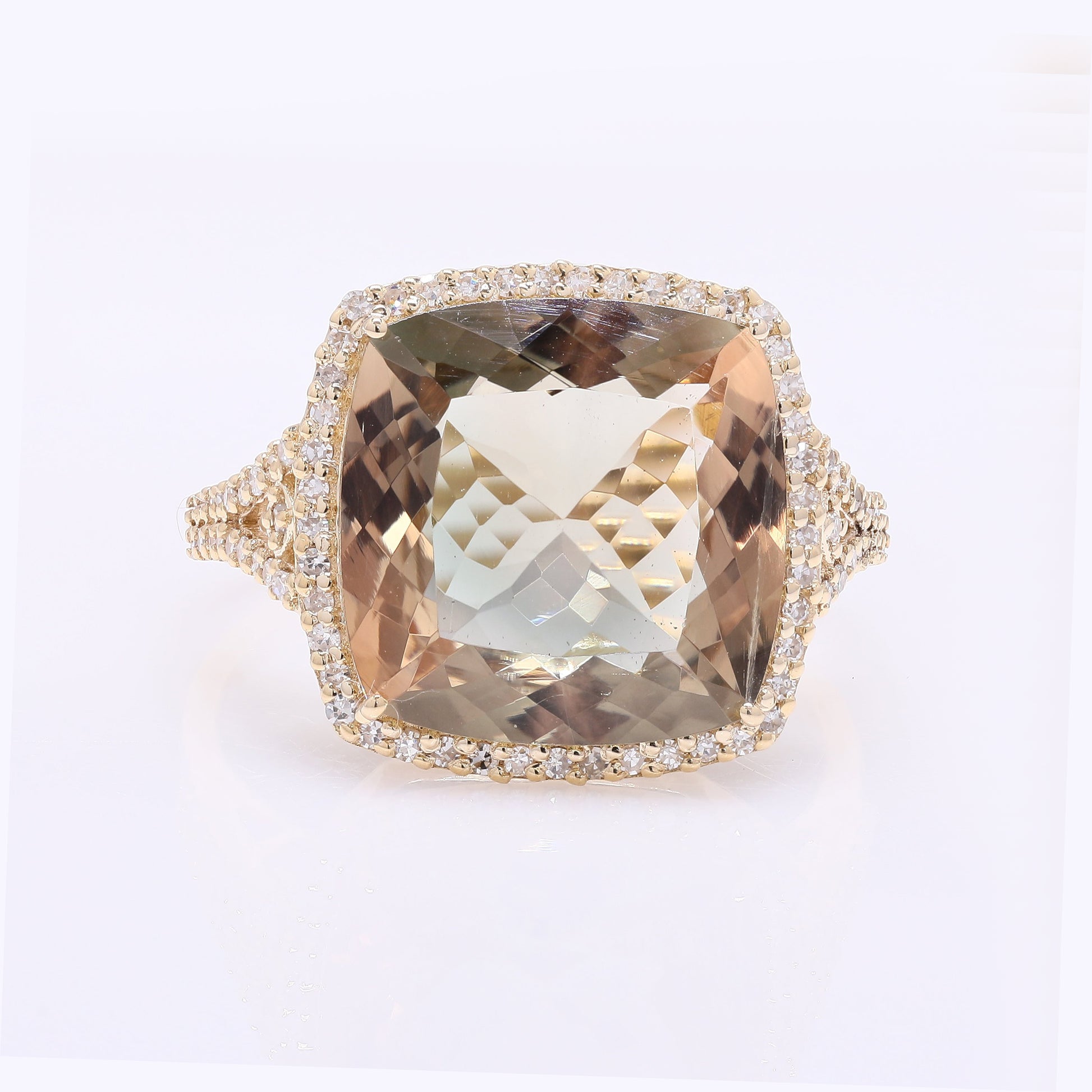 6.46 Ct Cushion Mixed Cut Natural Sunstone 14K Gold Ring