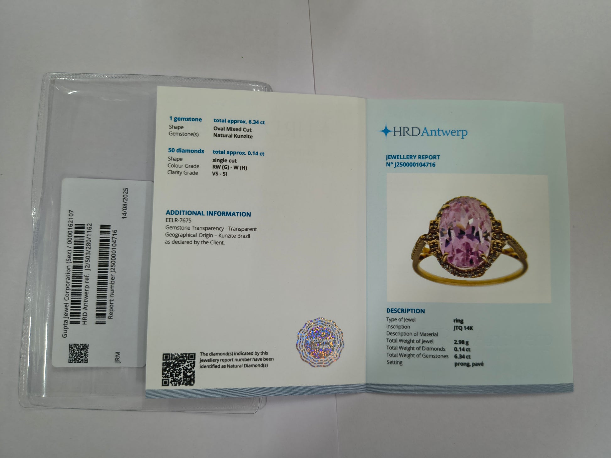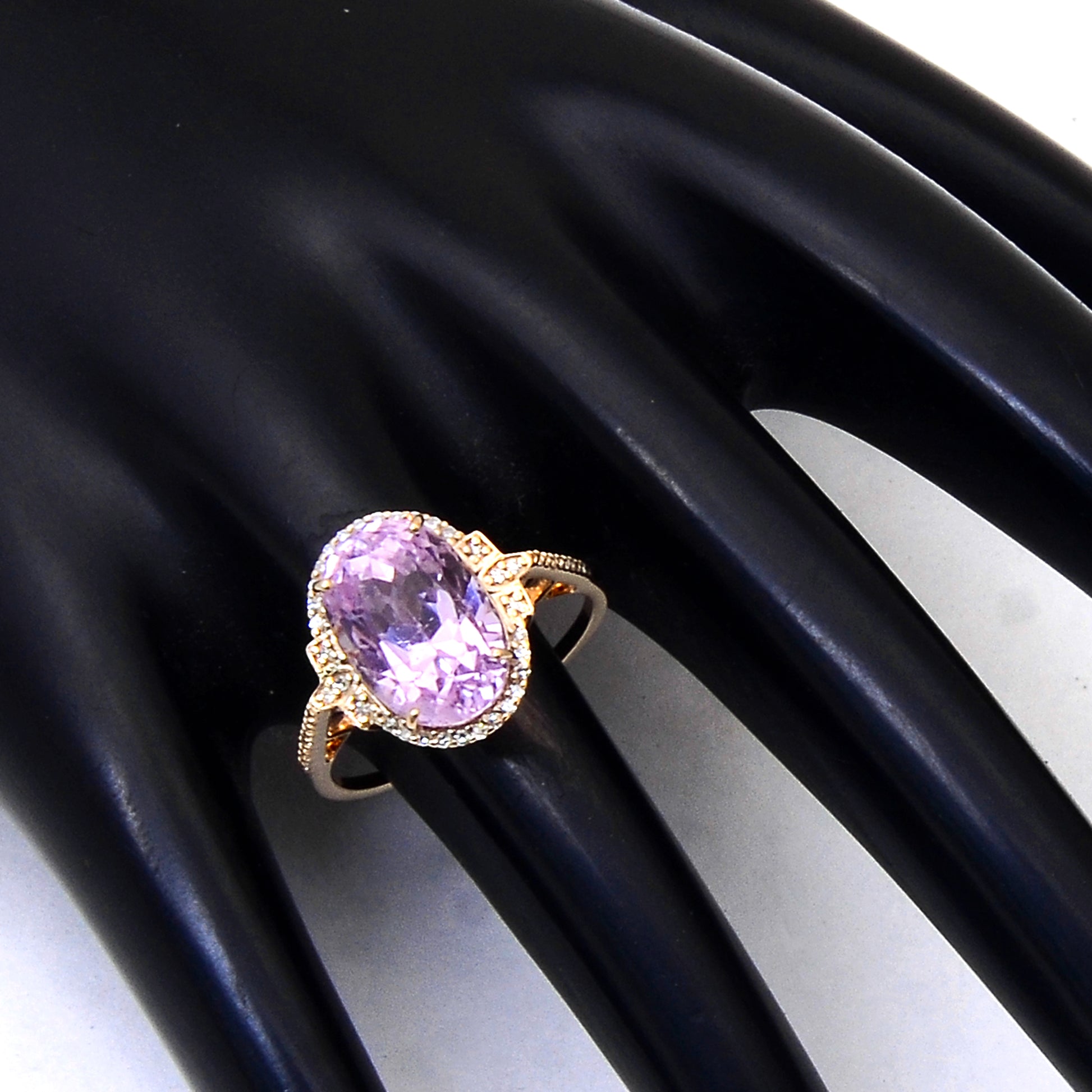 6.48 Ct Oval Mixed Cut Natural Kunzite 14K Gold Ring