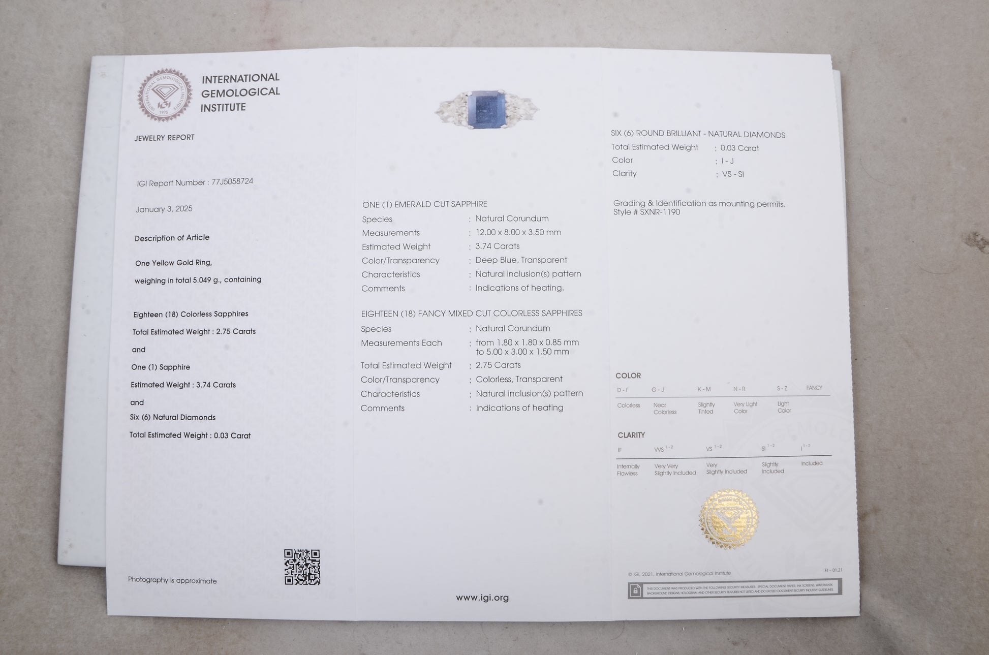 - Lab Name: International Gemological Institute (IGI)