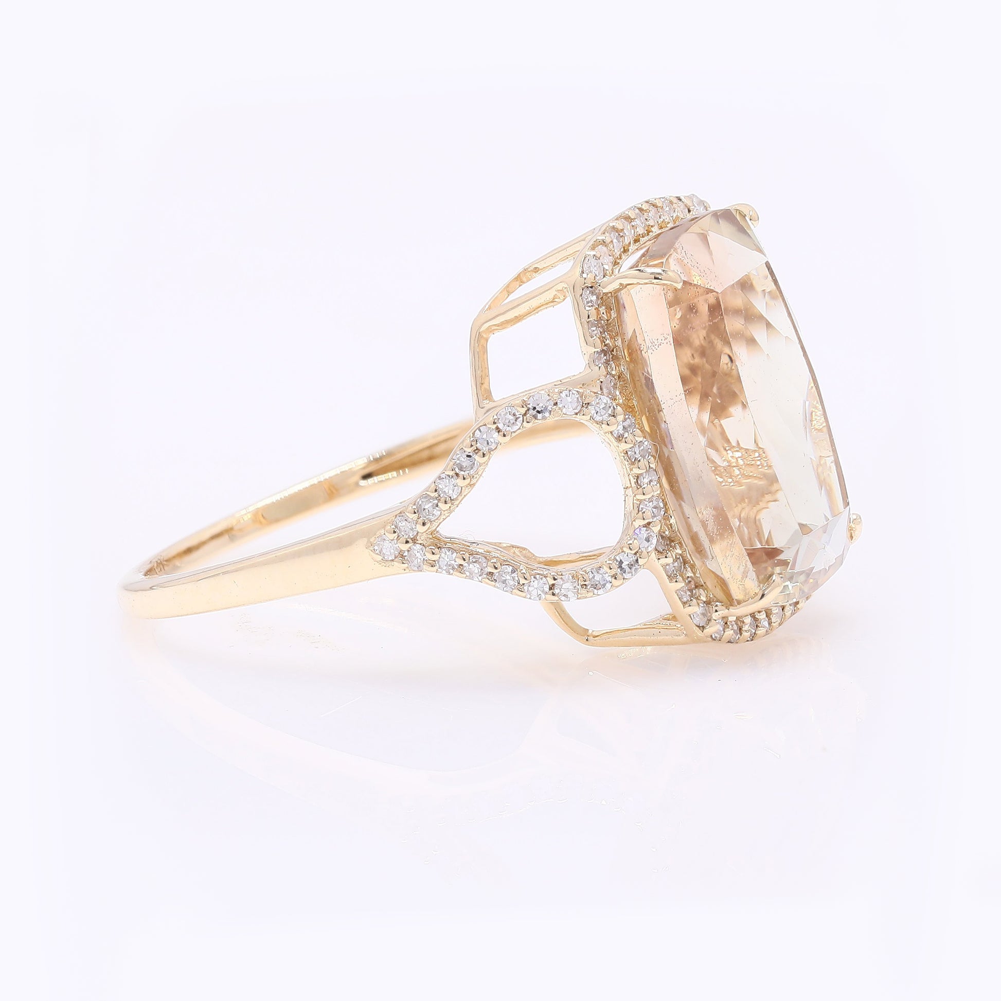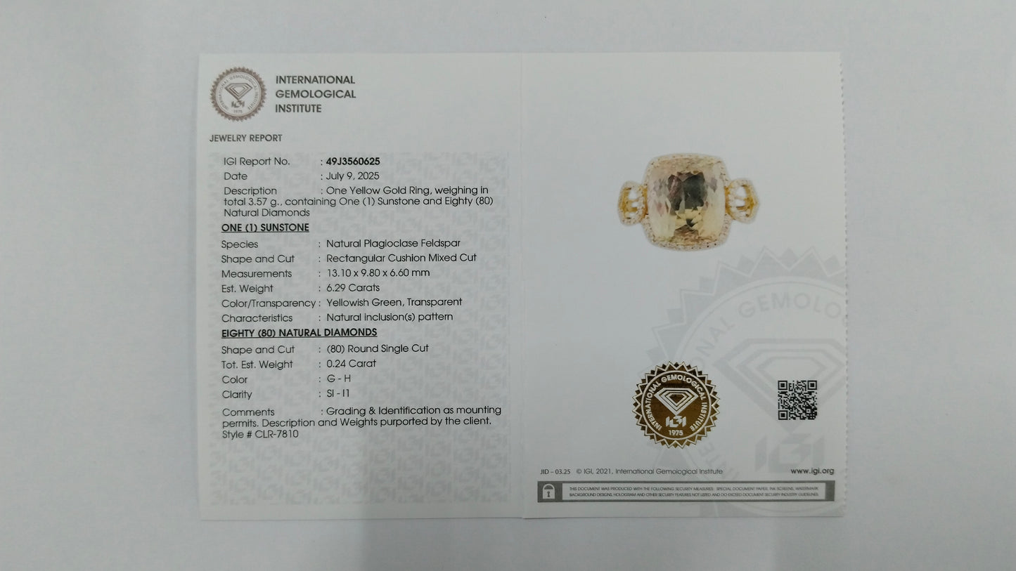 6.53 Ct Rectangular Cushion Mixed Cut Natural Plagioclase Feldspar Sunstone 14K Gold Ring