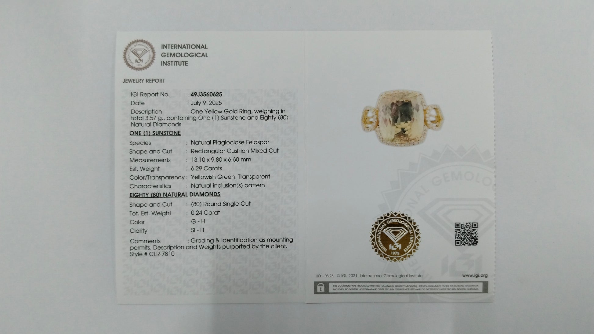 - Lab Name: International Gemological Institute (IGI)