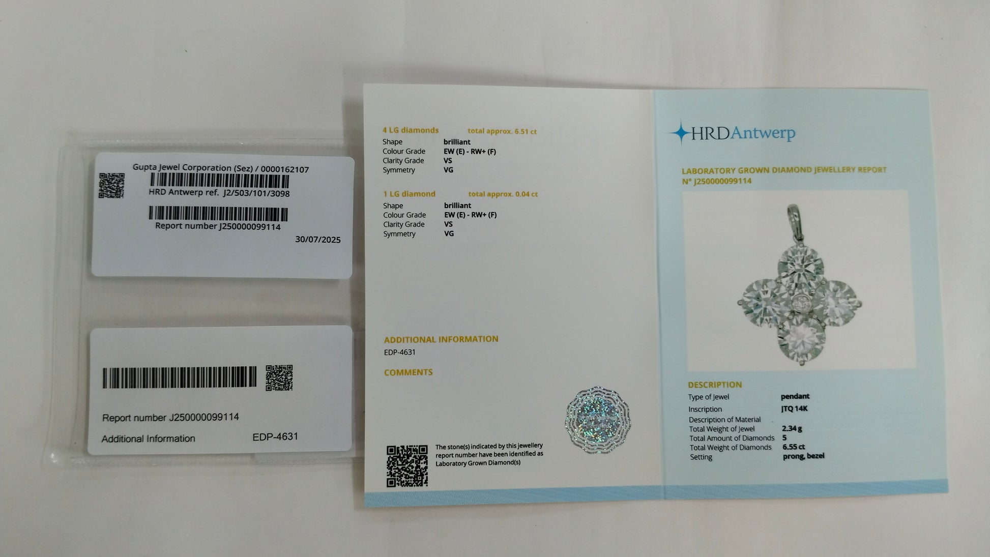 6.55-Carat Lab-Grown Diamond Round Brilliant Pendant - HRD Certified