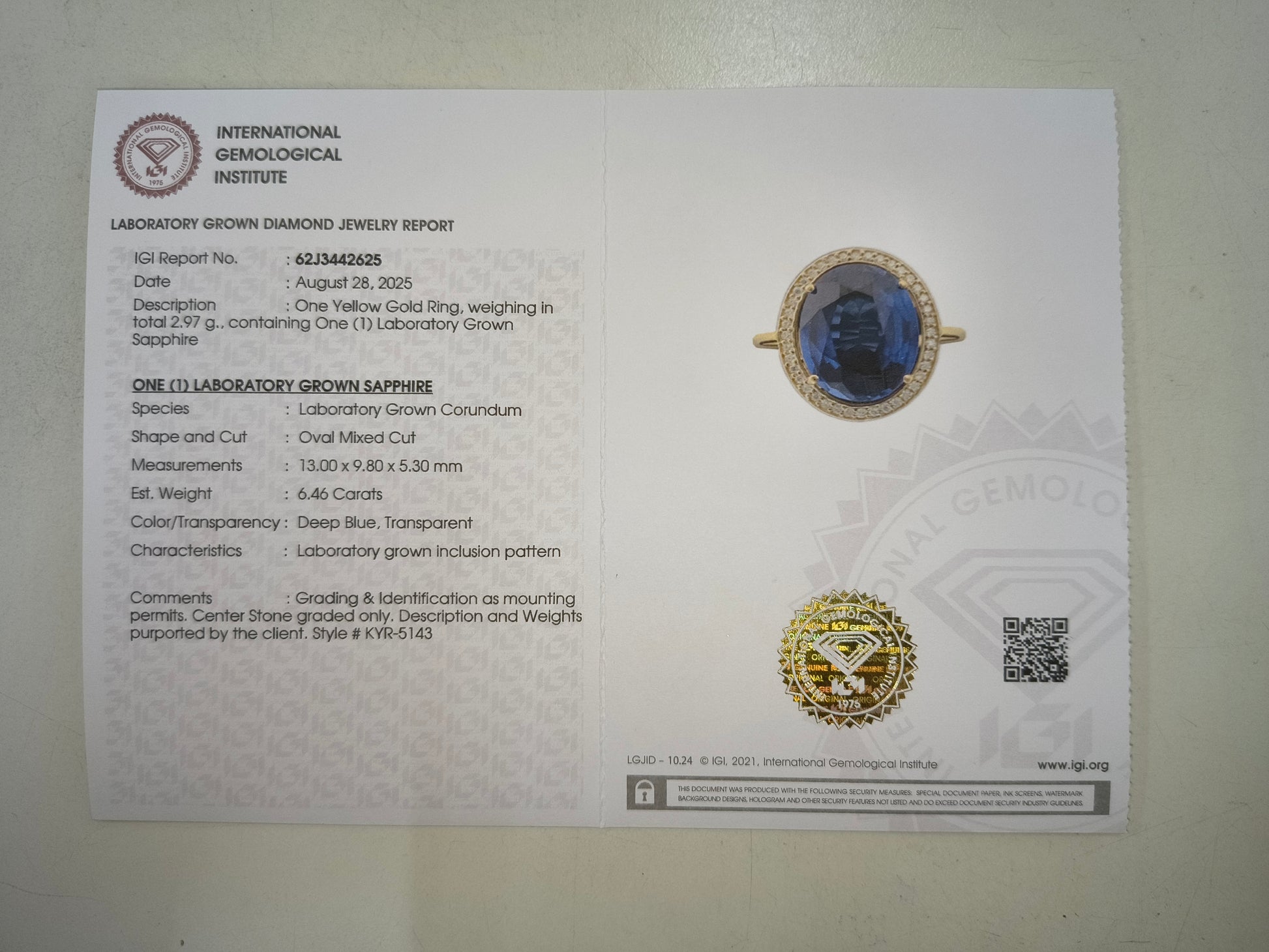 6.58 Total Carat Lab Grown Sapphire 14K Gold Ring