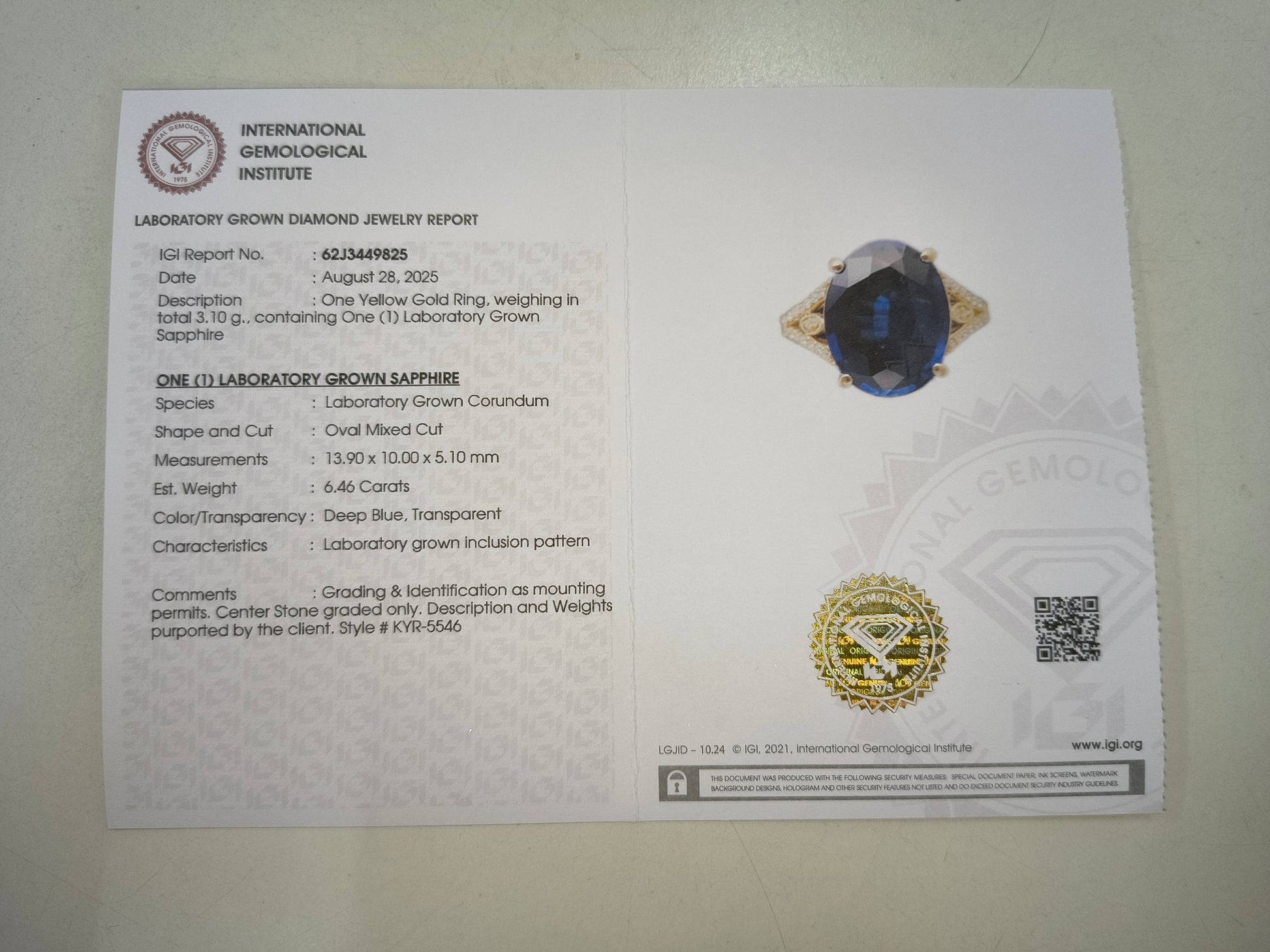 6.58 Total Carat Lab Grown Sapphire 14K Gold Ring