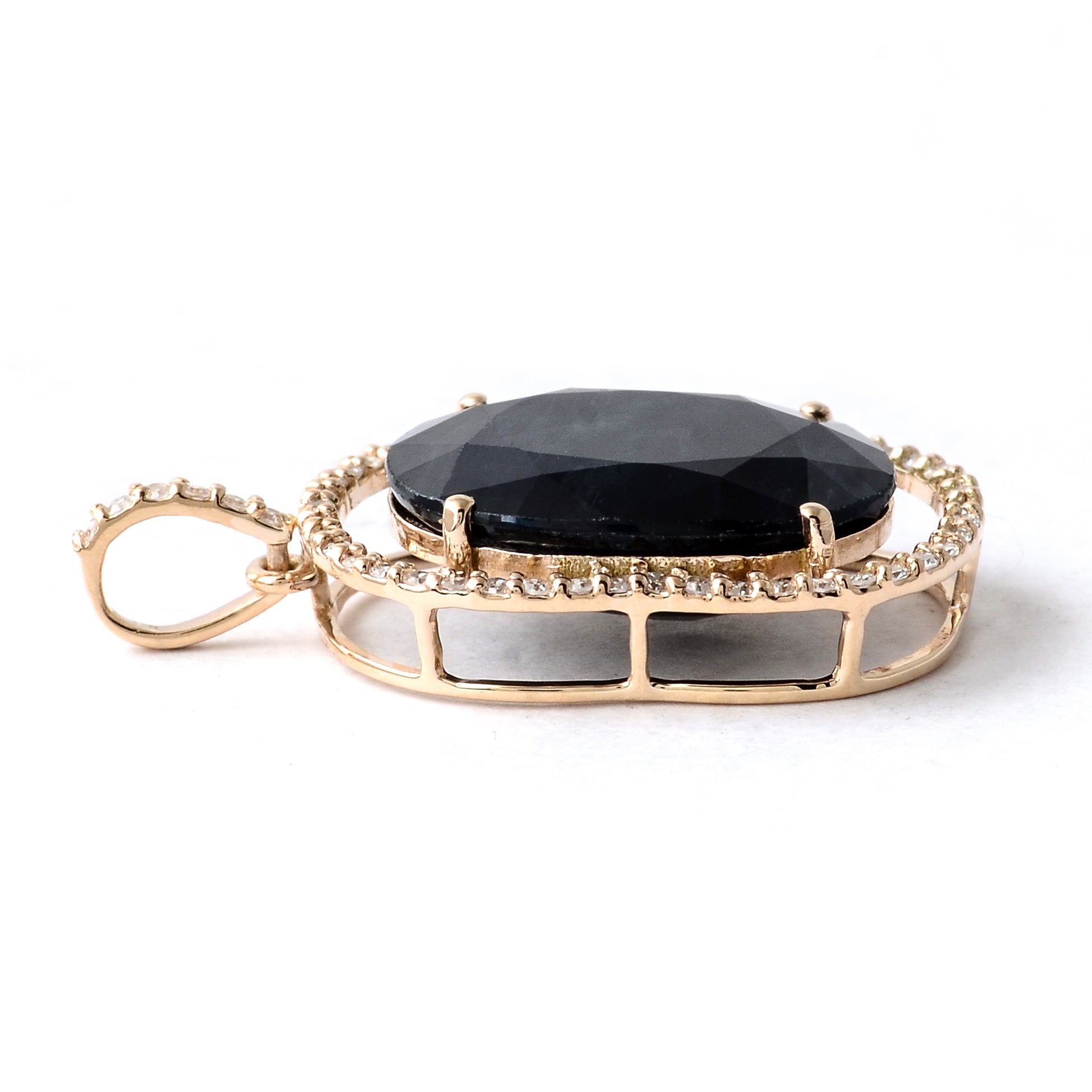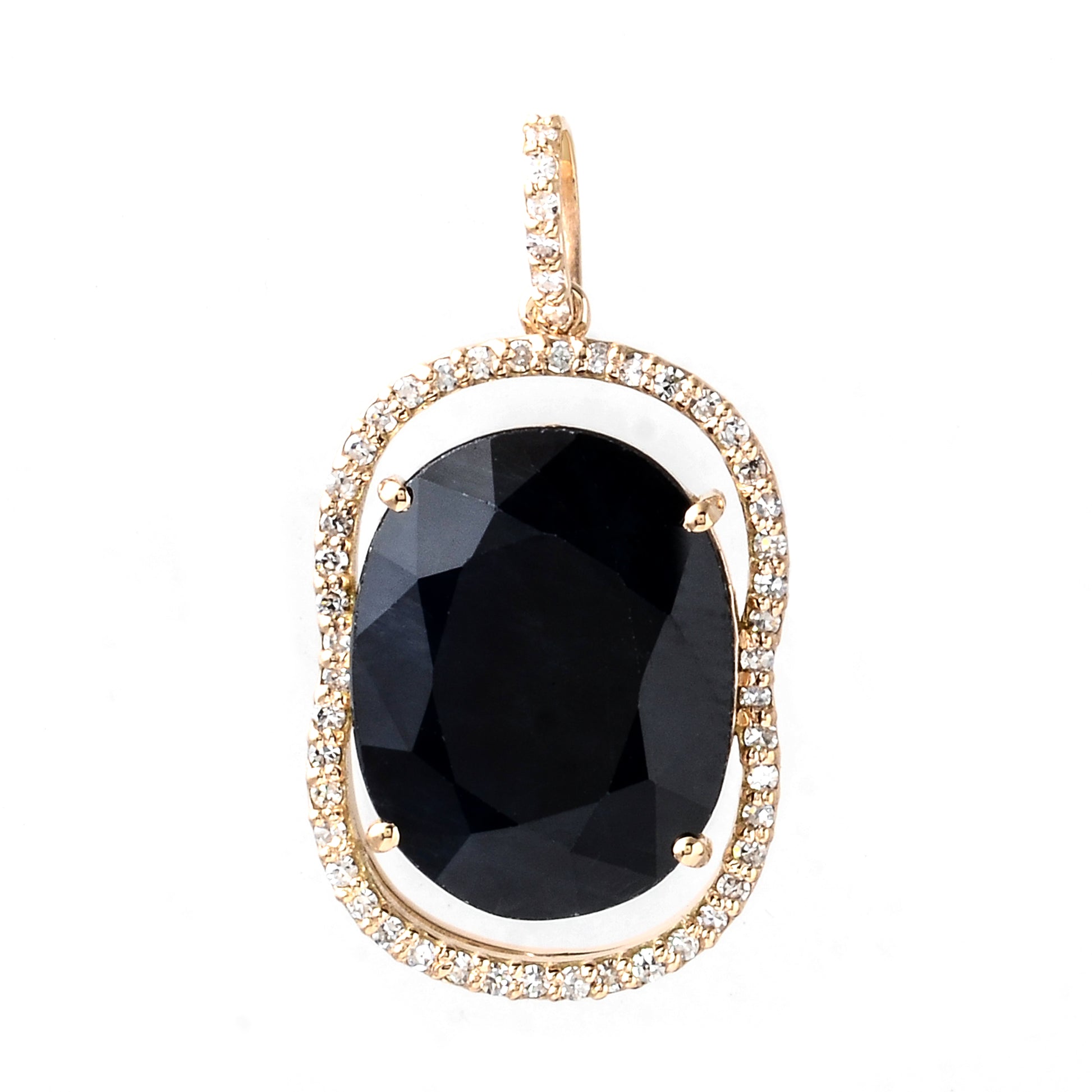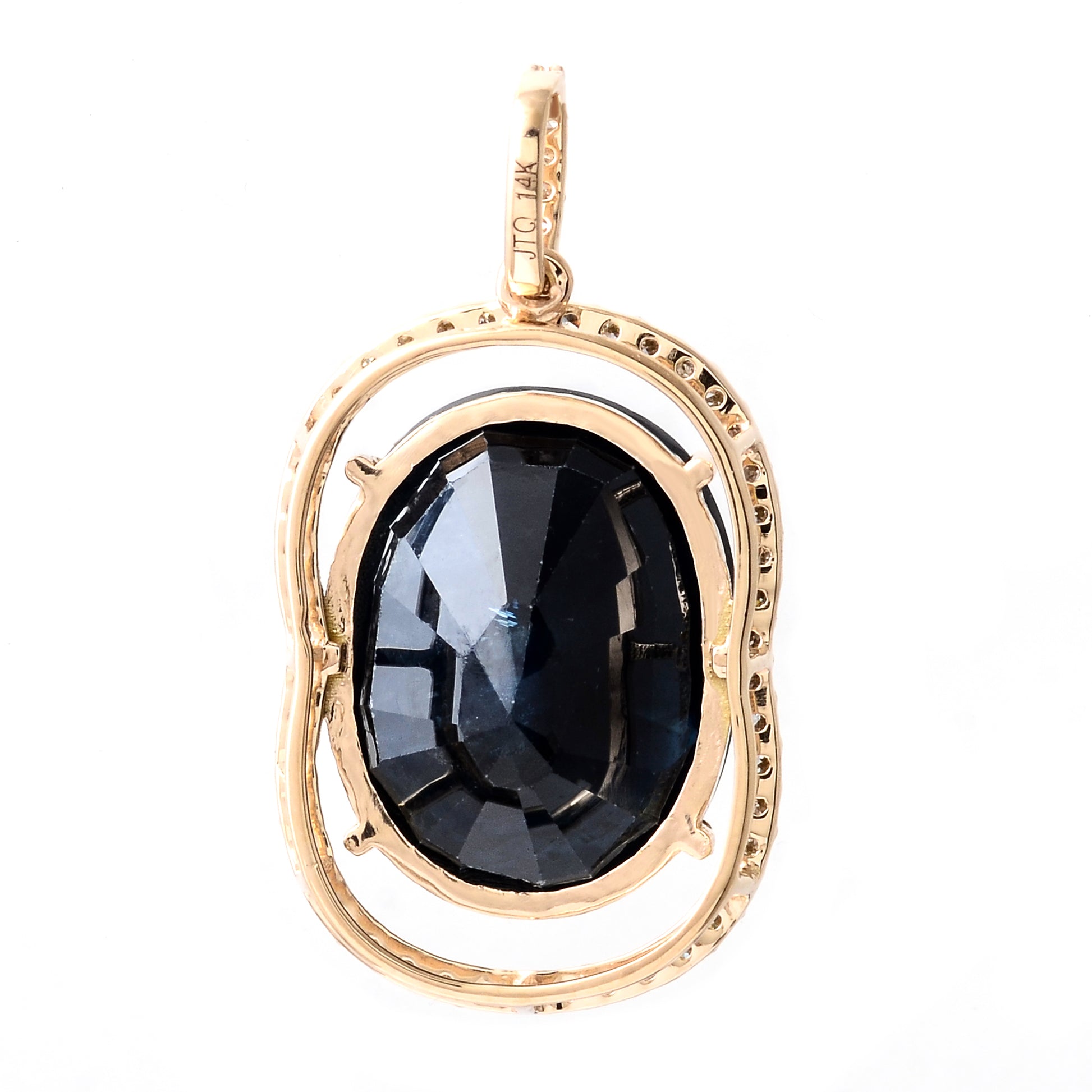 6.65 Ct Oval Mixed Cut Natural Corundum Sapphire 14K Gold Pendant