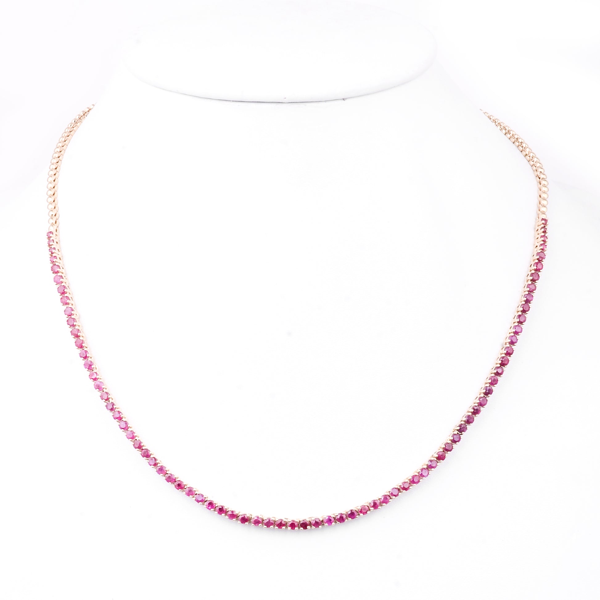 6.65 Ct Round Mixed Cut Natural Corundum Ruby 14K Gold Necklace