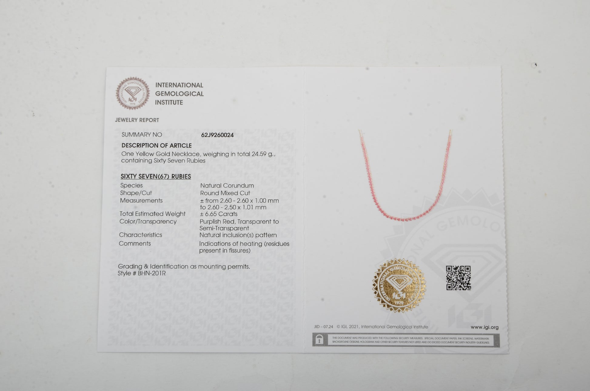 6.65 Total Carat Natural Corundum Ruby 14K Gold Necklace