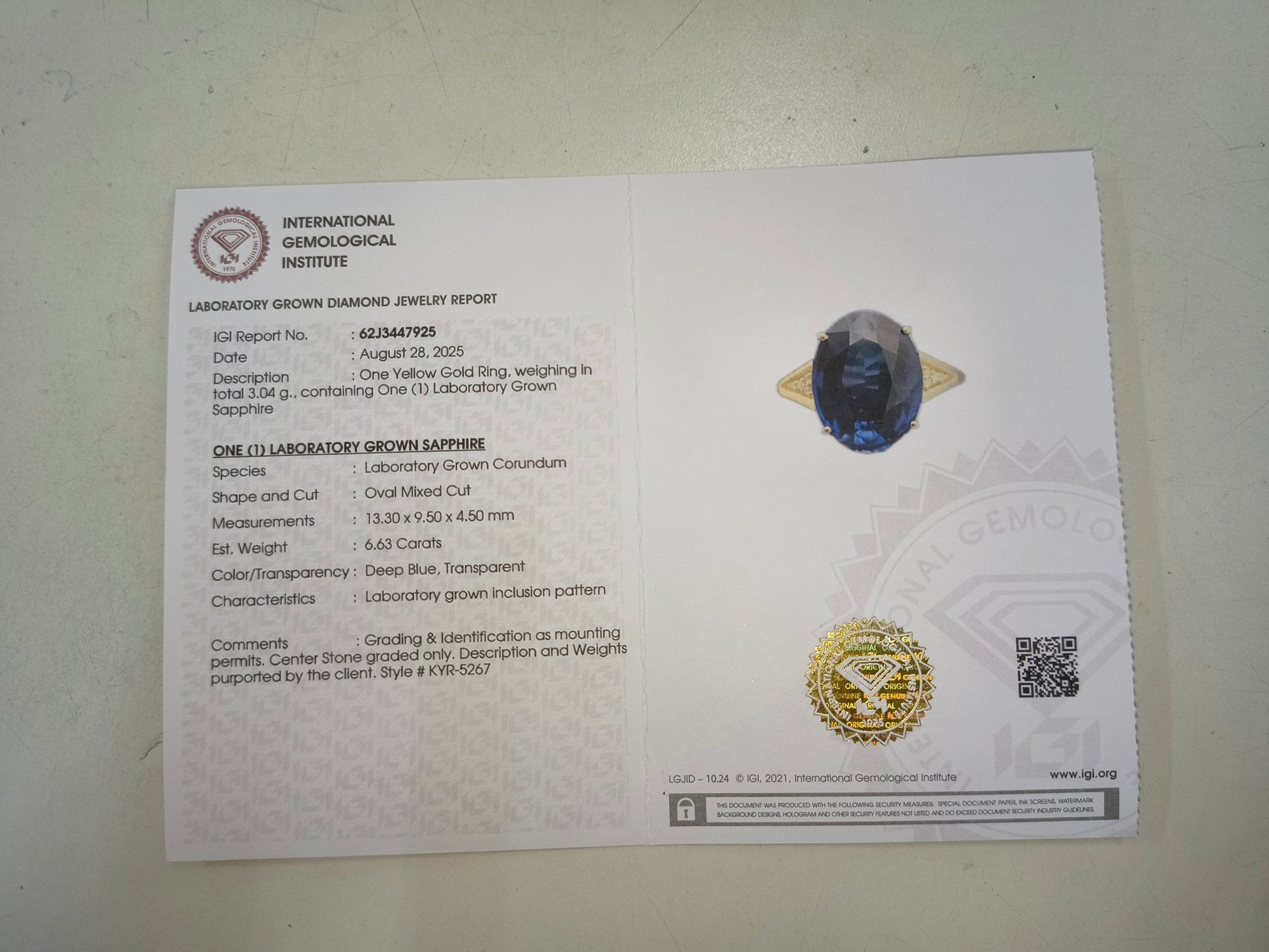6.66 Total Carat Lab Grown Sapphire 14K Gold Ring