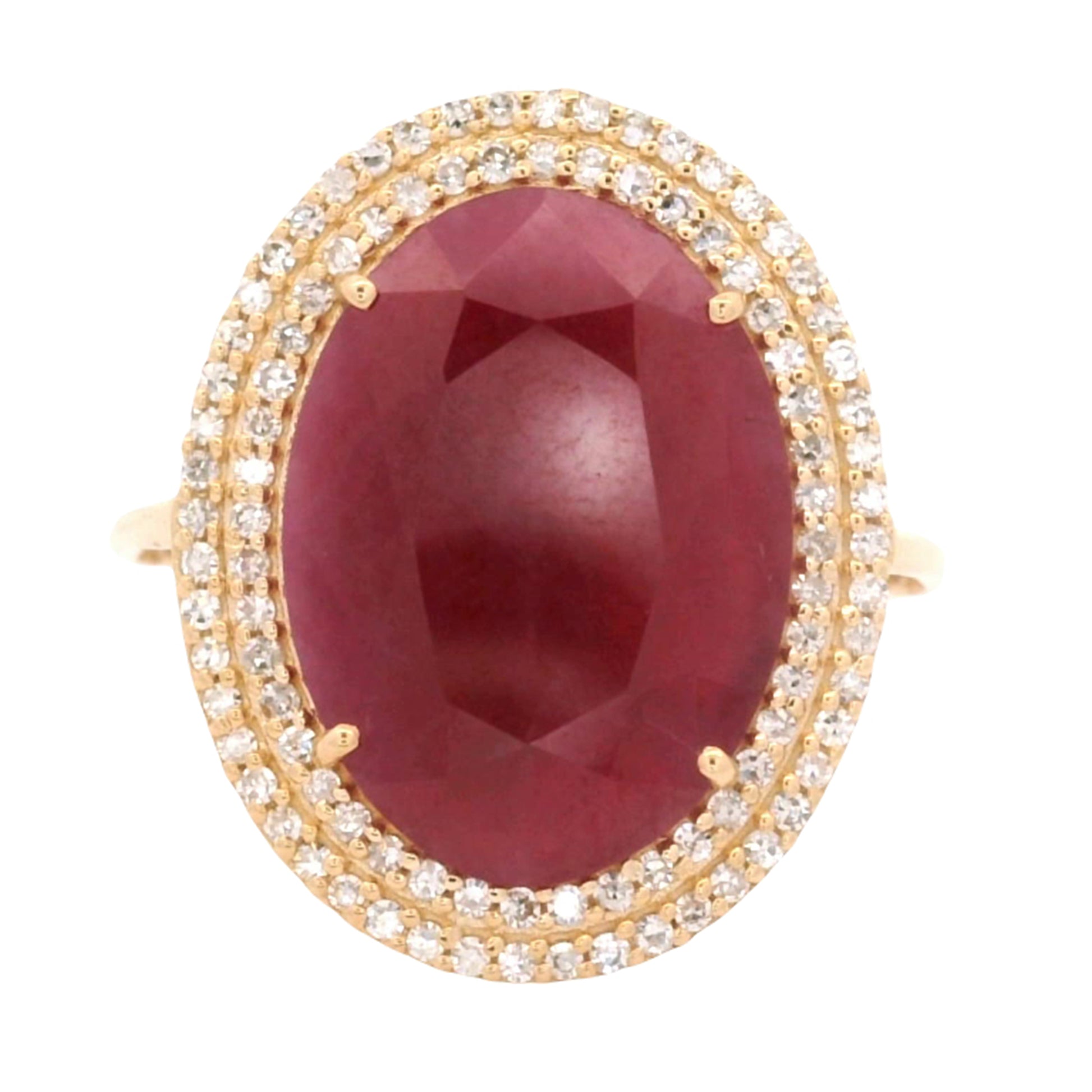 6.67 Ct Oval Mixed Cut Natural Ruby 14K Gold Ring