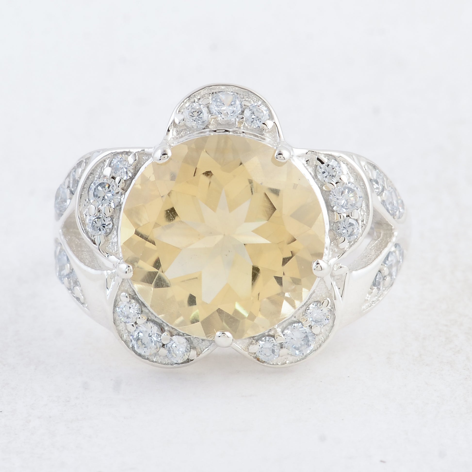6.69 Ct Round Citrine 925 Sterling Silver Ring