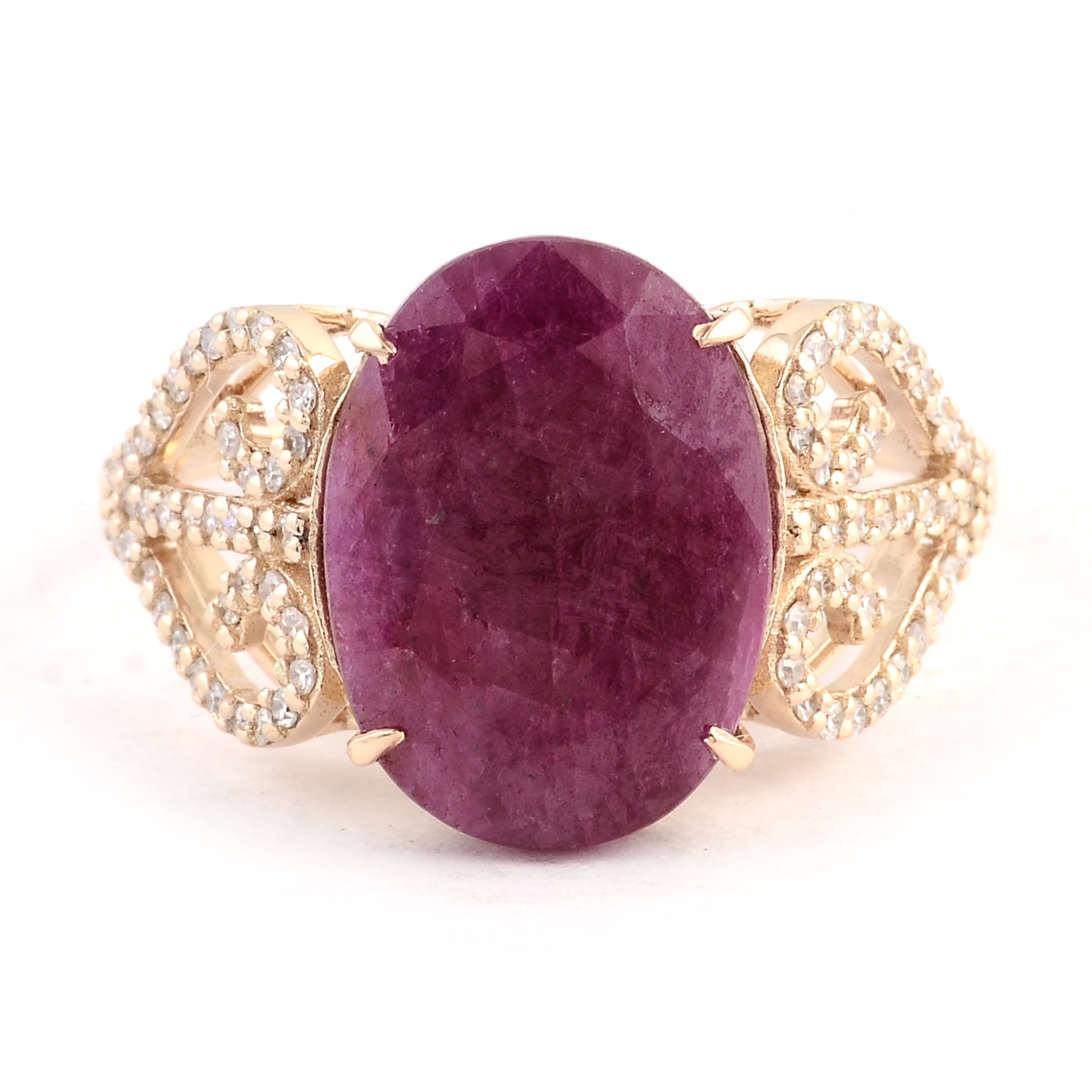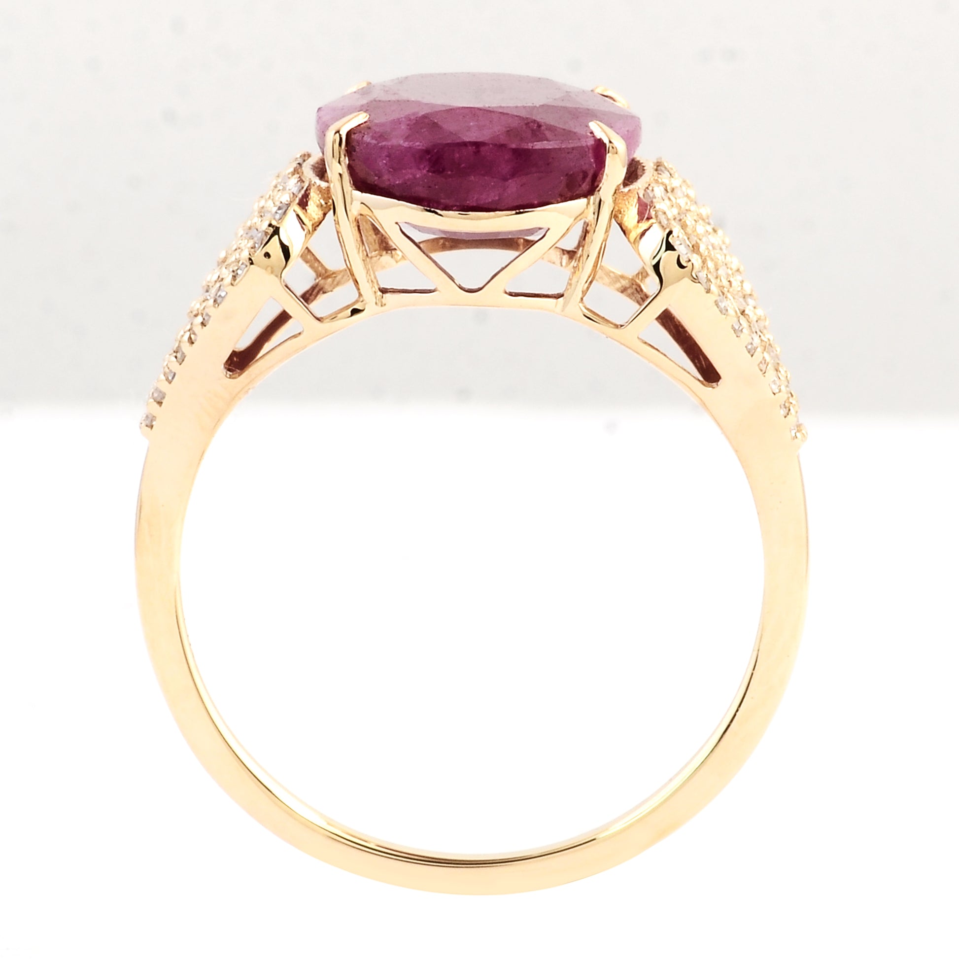 6.72 Ct Oval Mixed Cut Natural Corundum Ruby 14K Gold Ring