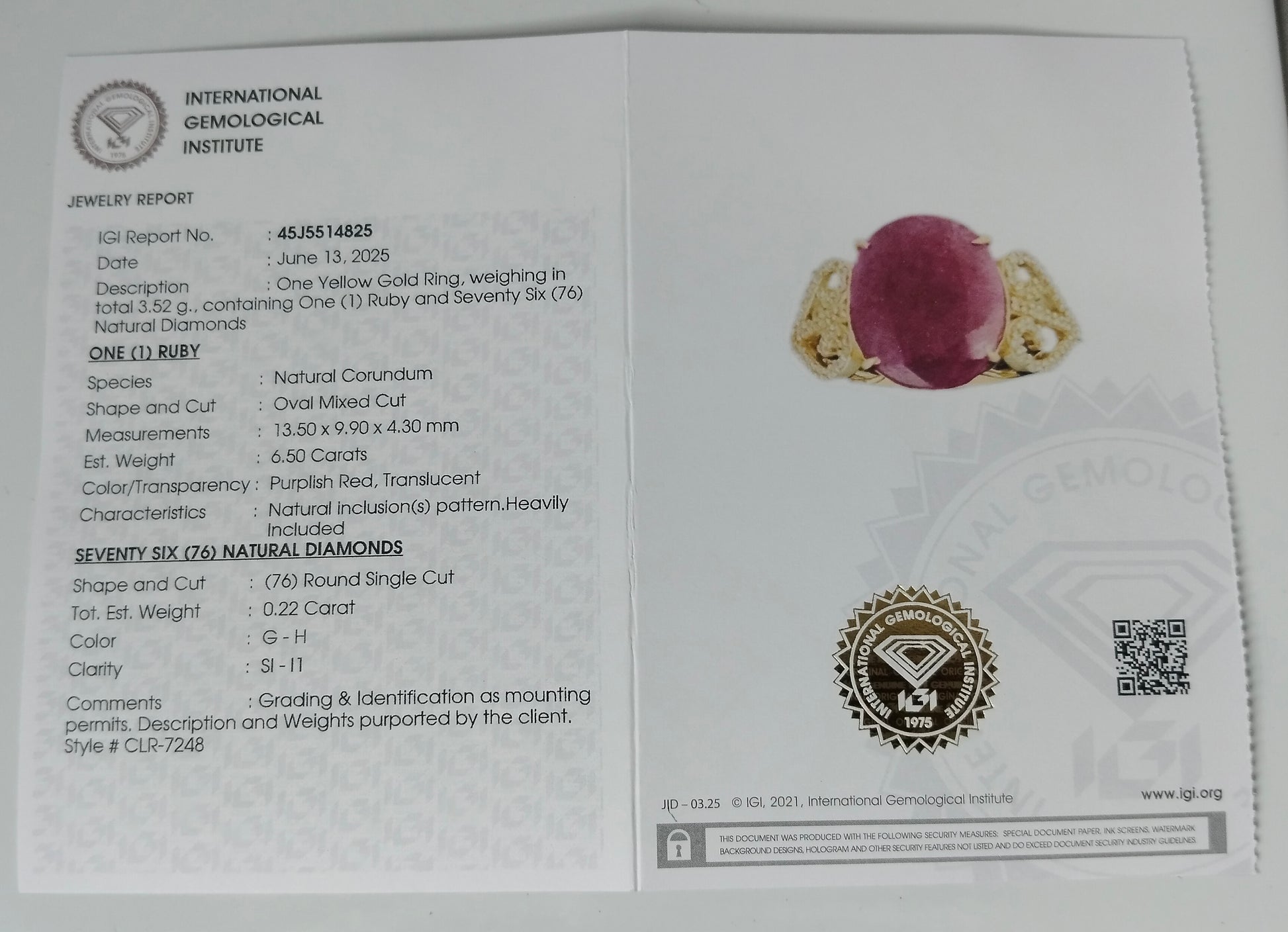 6.72 Total Carat Natural Corundum Ruby 14K Gold Ring