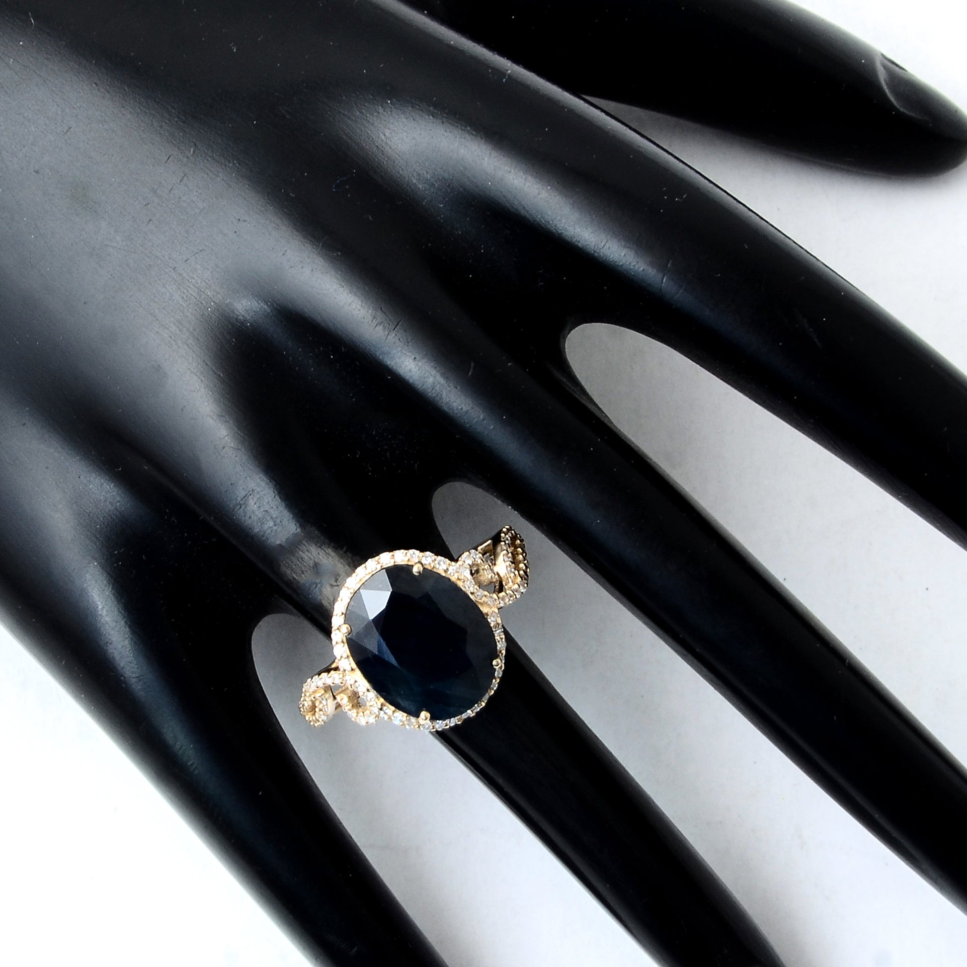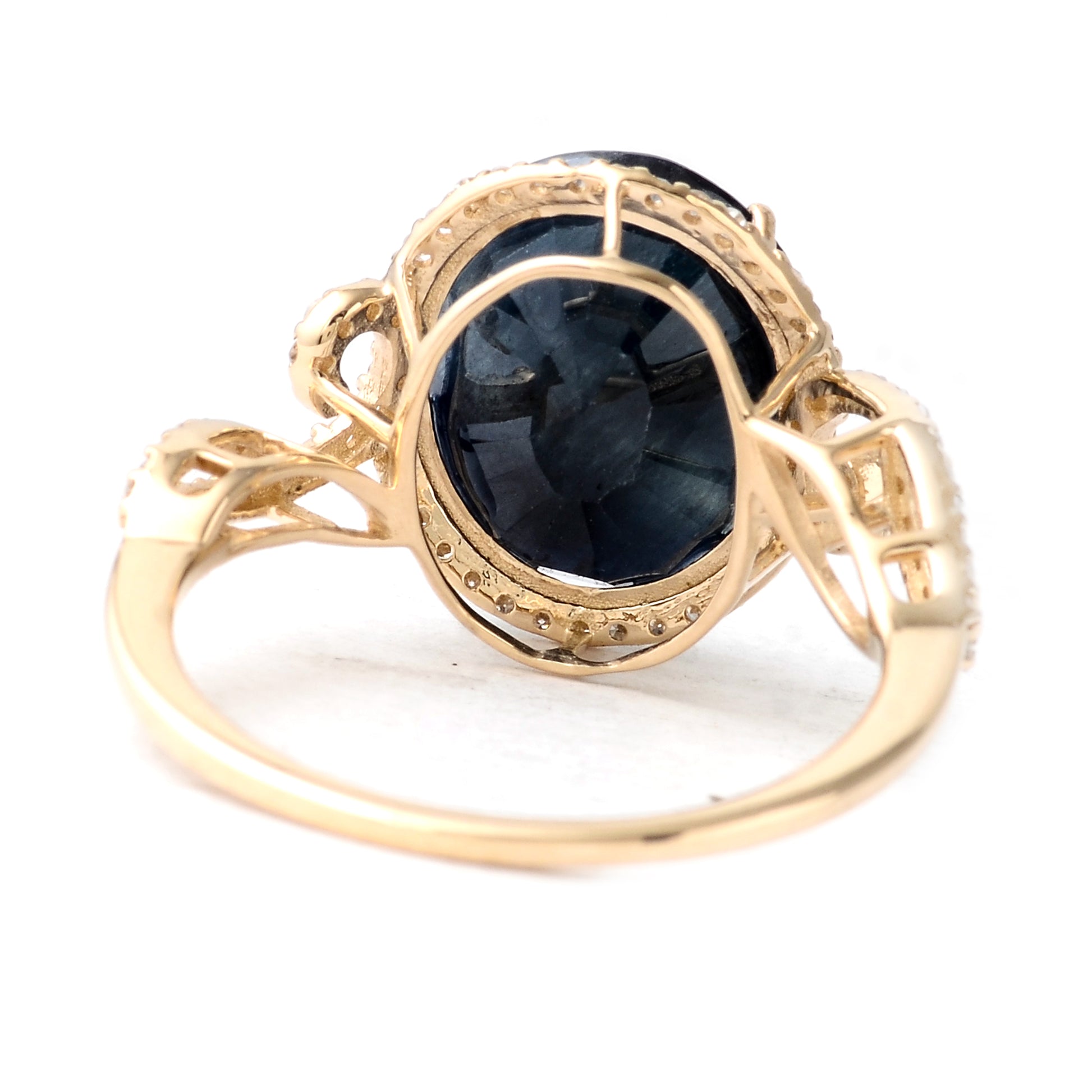 6.75 Ct Oval Mixed Cut Natural Corundum Sapphire 14K Gold Ring