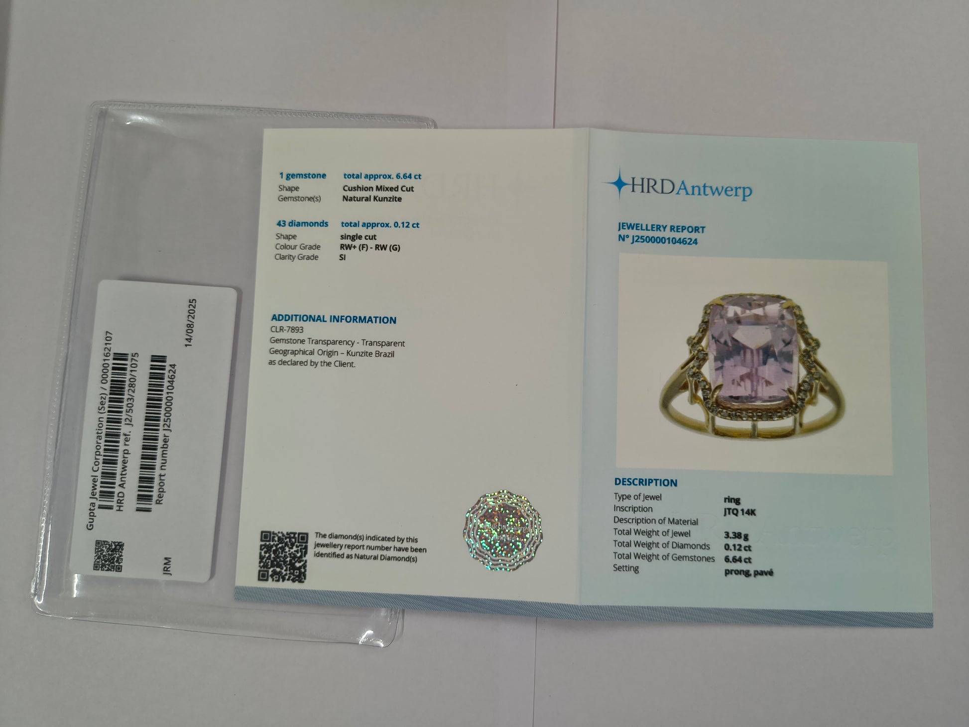 6.76 Ct Cushion Mixed Cut Natural Kunzite 14K Gold Ring