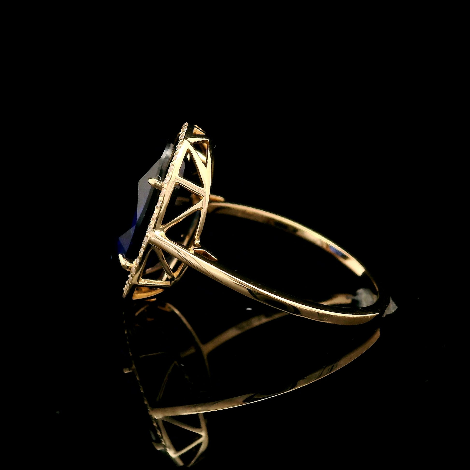 6.78 Ct Oval Mixed Cut Lab Grown Sapphire 14K Gold Ring