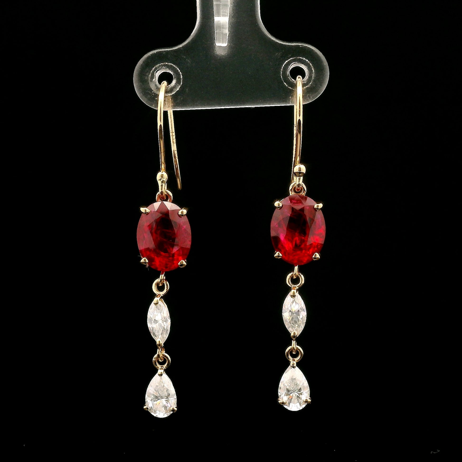 6.85 Ct Oval Mixed Cut Lab Grown Ruby 14K Gold Earrings