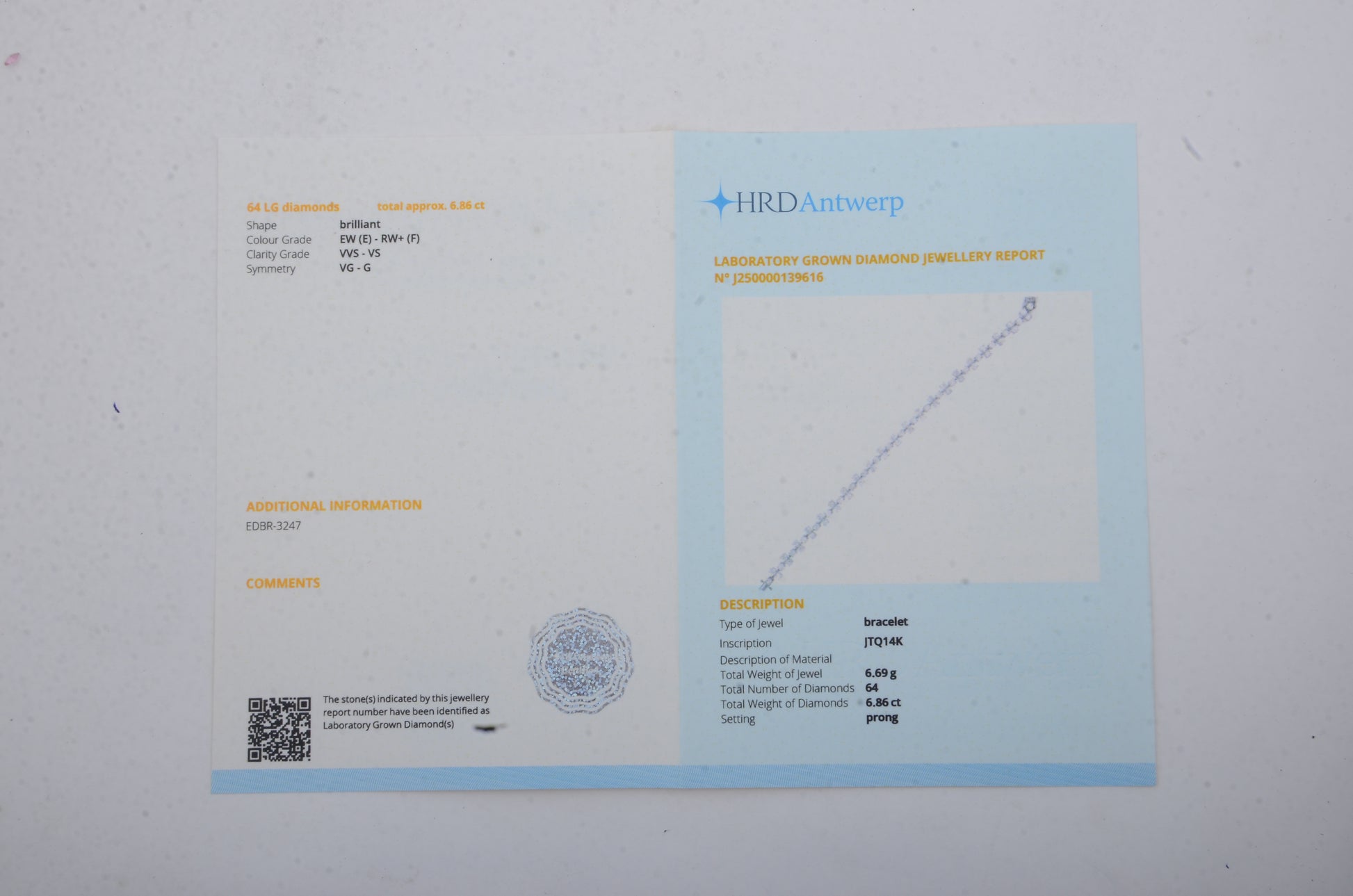 6.86-Carat Lab-Grown Diamond Round Brilliant Bracelet - HRD Certified