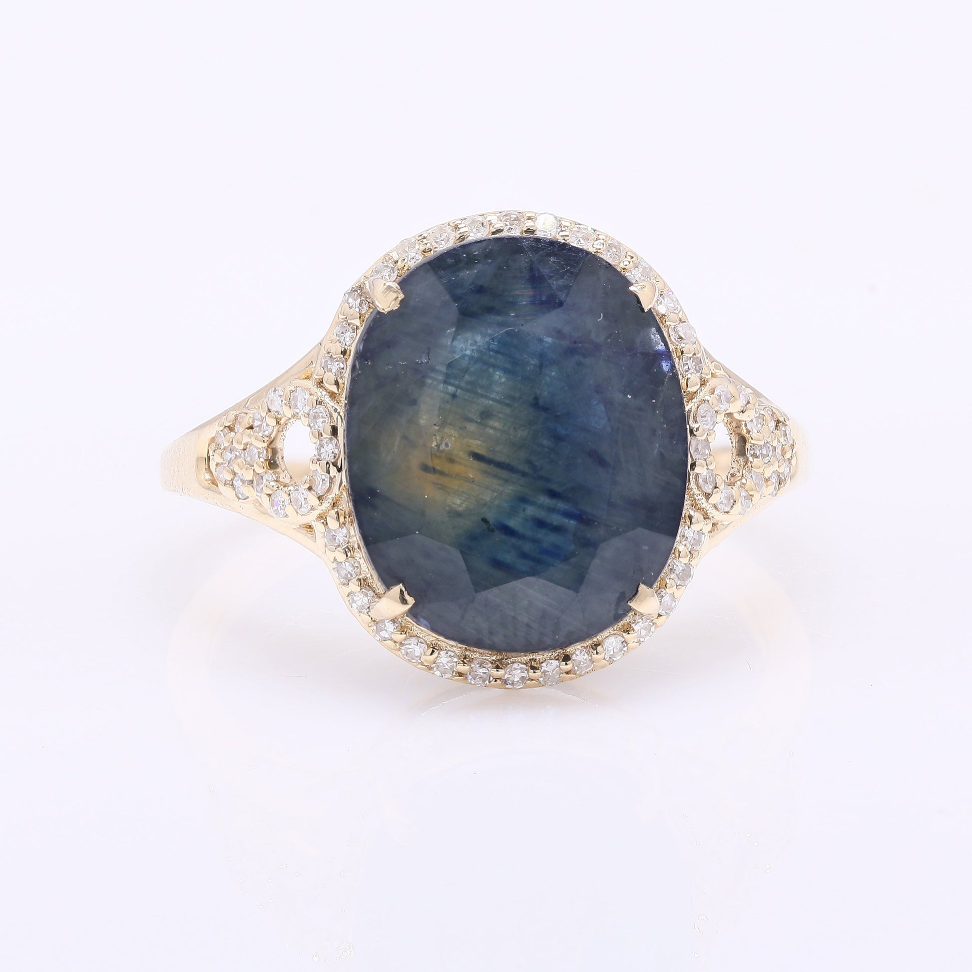 6.93 Ct Oval Mixed Cut Natural Corundum Sapphire 14K Gold Ring